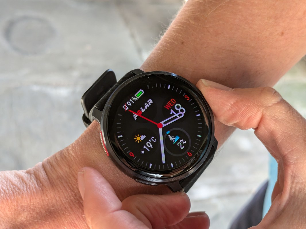 This watch has more functions than a Star Trek transponder. As well as telling the time and counting your steps, it has mapping, skin temperature, heart rate, sleep monitoring, blood oxygen levels… it might have a function to remind you to fee the cat too, we just haven’t found it yet. In the box you get an extra strap, plus a H10 Heart Rate monitor. It’s got a variety of built in fitness tests too. Despite all the extra functions, its a little lighter and smaller than the Polar Grit X we previously tested.