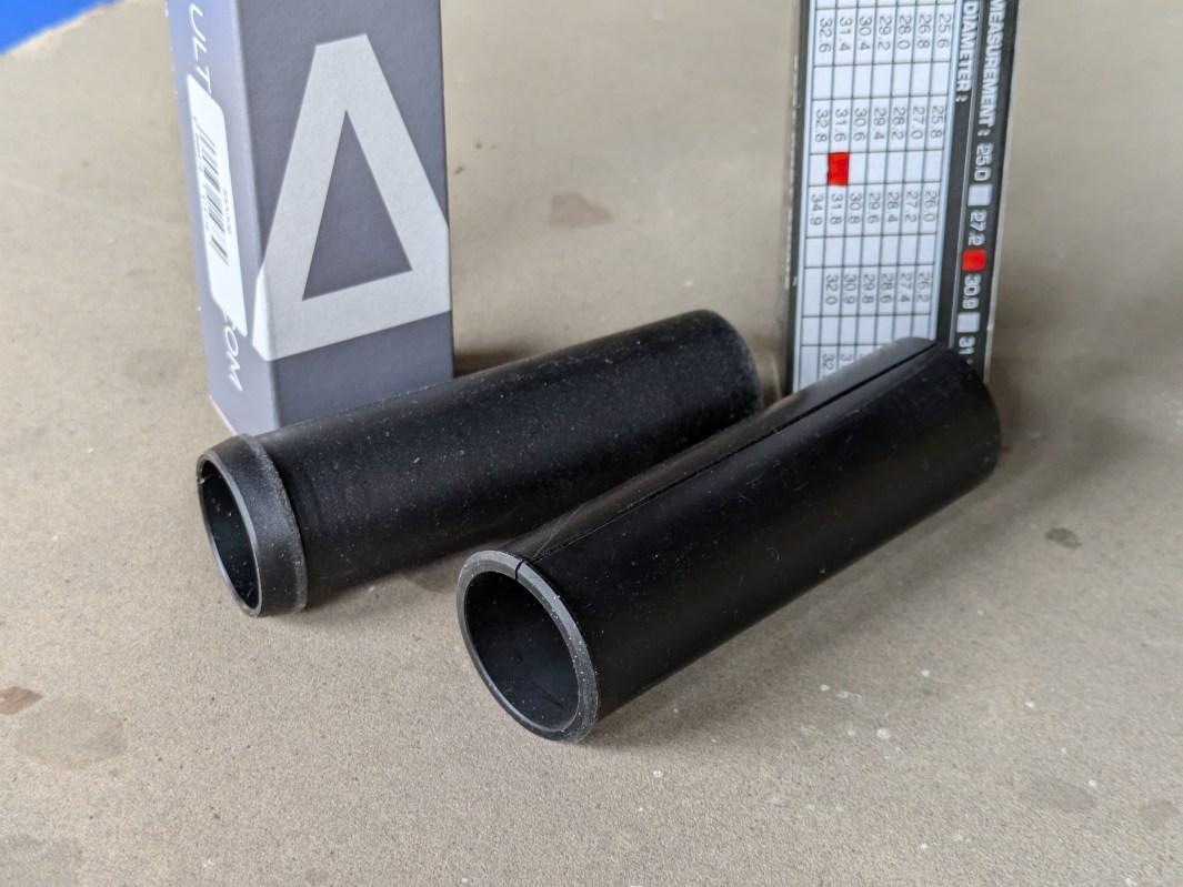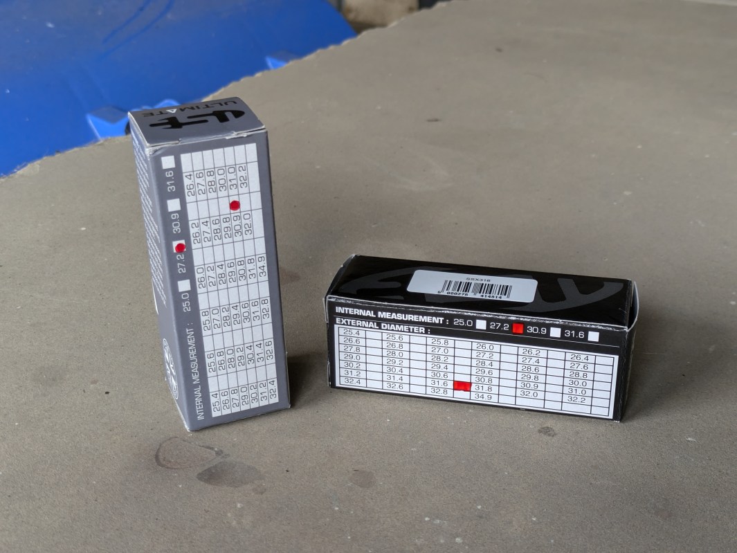 Seatpost shims ain’t exactly glam but they can bring a lot of joy. And in our experience, USE make the best ones. Cheaper alternatives seems to get bent or buckled in storage (maybe that’s just us?) These 27.2 ID ones (for the Vybe post above) are made from some sort of plastic. USE also make a chunky 30.9 to 34.9mm shim out of aluminium, which we find ourselves using more and more these days, usually in ebikes with their chunky seat tubes.