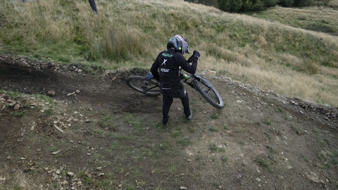 There were races, but just for kicks. Or, losing them. This young ‘un came down having already lost one shoe on the dual slalom, but was still racing. Catching the centre line and taking a tumble, he lost the other shoe. He got back up and tried to get back on his bike as quickly as possible, then paused as his second shoe was thrown down the hillside towards him. In a moment of inspired good-sport-ness, his dual slalom co-competitor (and Havok crew member, Huey Walker) pulled up short of the finish line and told the youngster ‘you can still win!’. Nice work.