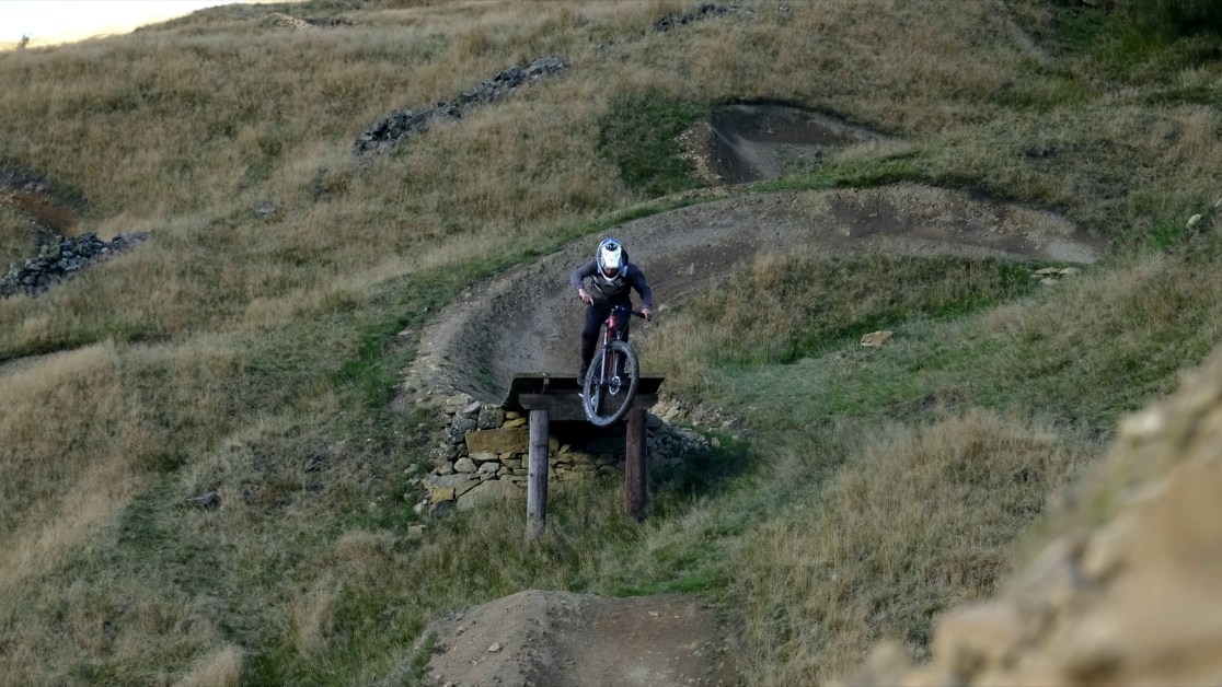A pair of jump lines up the top of the hill make use of a hollow to offer up a touch of wind protection, while the two lines shadow each other with a slight increase in difficulty between the two. Learn one feature, then move a few feet left to start progressing.
