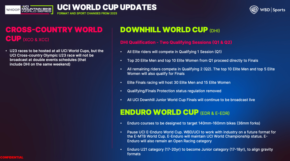 In a leaked document titled ‘2025 MTB Reform, Evolution of Mountain Bike Racing’, the UCI and Warner Brothers Discovery (WBD) set out proposed changes for the racing year ahead.