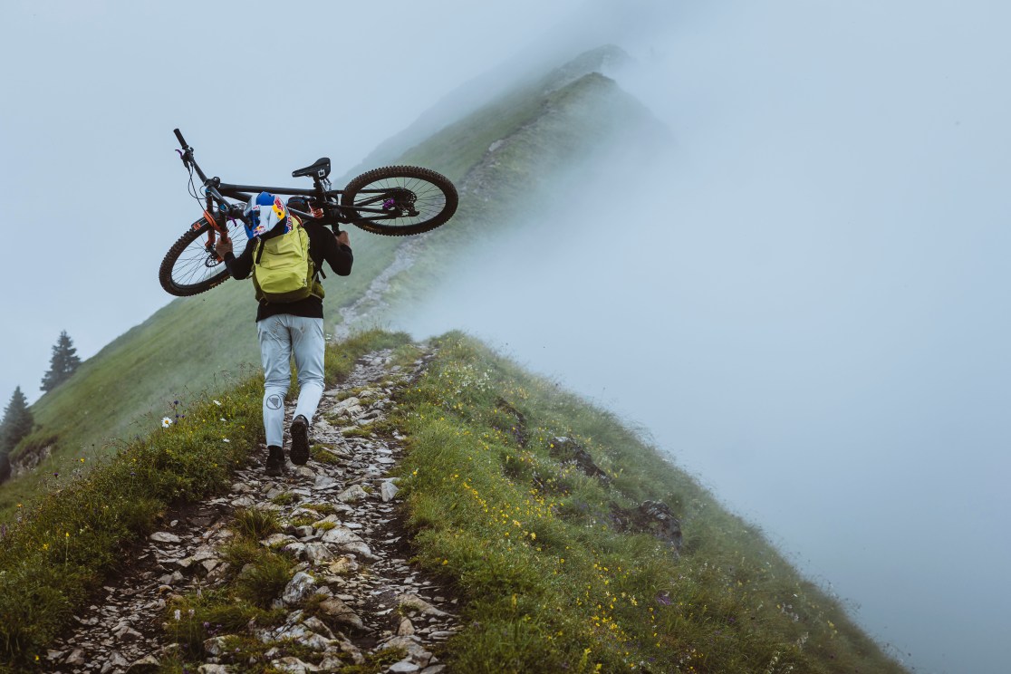Every Ridgeline film has presented a new challenge, pushed the team that bit further, but moving out of Wales into Alpine terrains super-sized the challenges – instead of hiking up to Terren y Gesail 666m above Dyfi Bike Park Gee and the crew faced 3,600m ascents with crumbling rockfaces and 600m sheer drops… every step they took the mountain resisted their efforts.