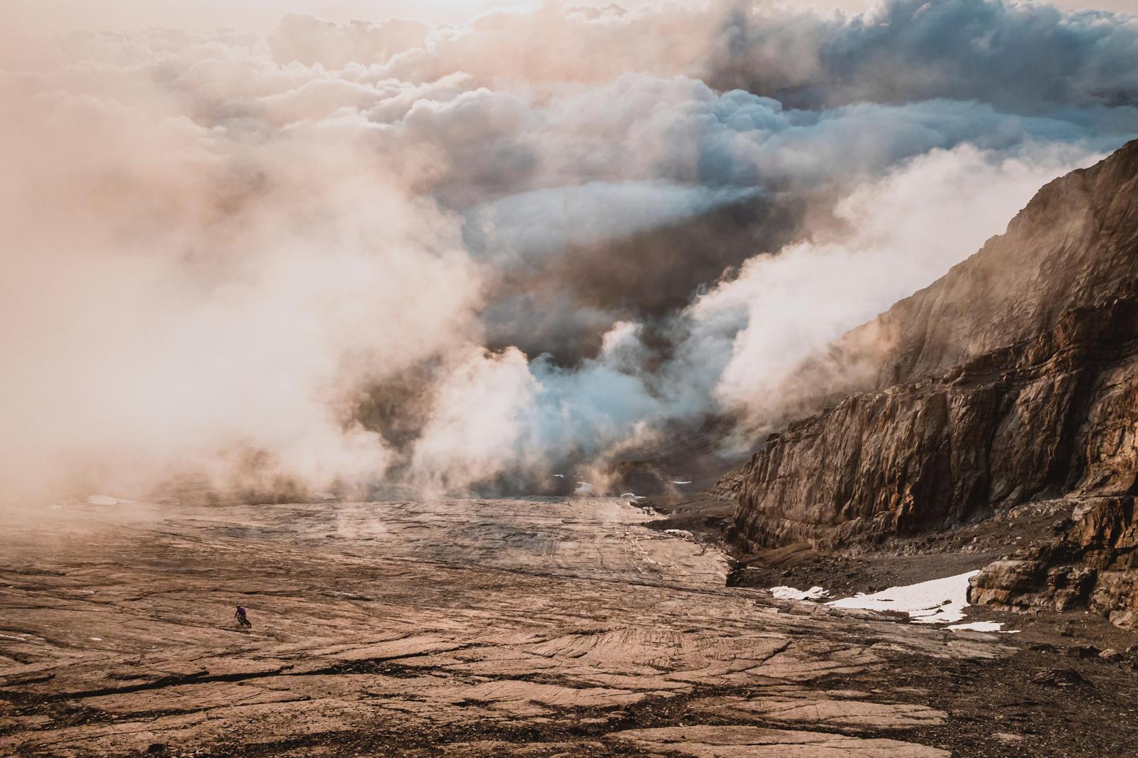 As hard as it was to walk away from what could have been some of the best footage we’d ever captured, we had to face reality and next day we went again with a different approach to the same ridge, the front face was (just about) manageable so we got our shot after all.