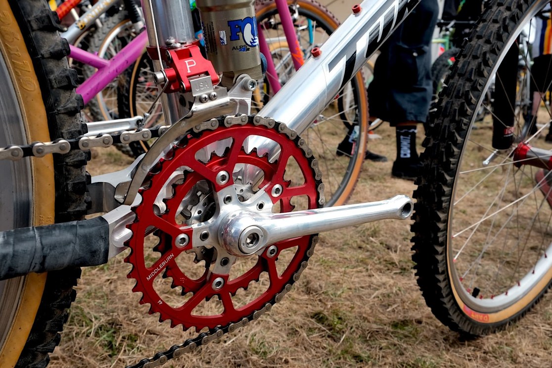 And the Bullseye cranks, again a little bit before my time, they just fetch crazy money and people are always after them. And that came in the collection and I just had to fit it to this one. And a really odd and rare Mavic chain ring.