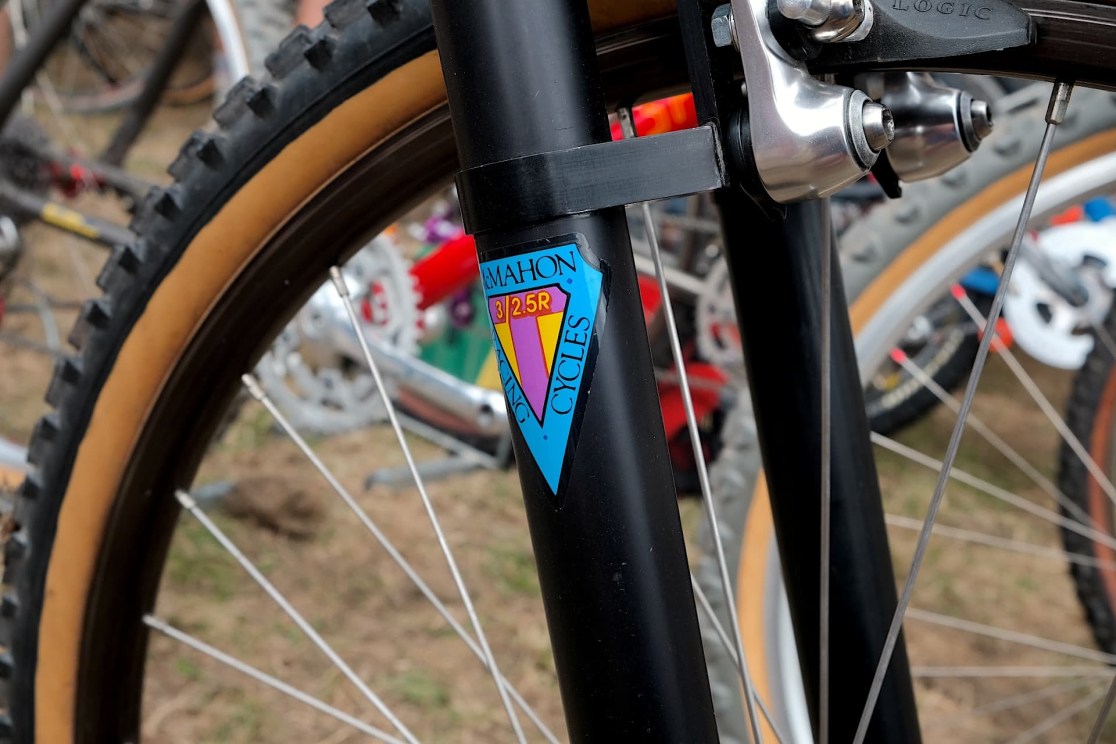The fork, McMahon Racing. So another cool thing about the backstory is the guy that owned them was called Mr. C. So the grandson said to me, ‘Oh, I see you’ve fitted those forks to that Bontrager. I think they were specially made for my grandad or something because he was always known in the police as Mr. C.’ And I’m like, ‘No, no, no, that’s McMahon Racing Cycles, that’s a brand all on its own.’ It just happens to be that the original owner was Mr. C. Which is quite cool.
