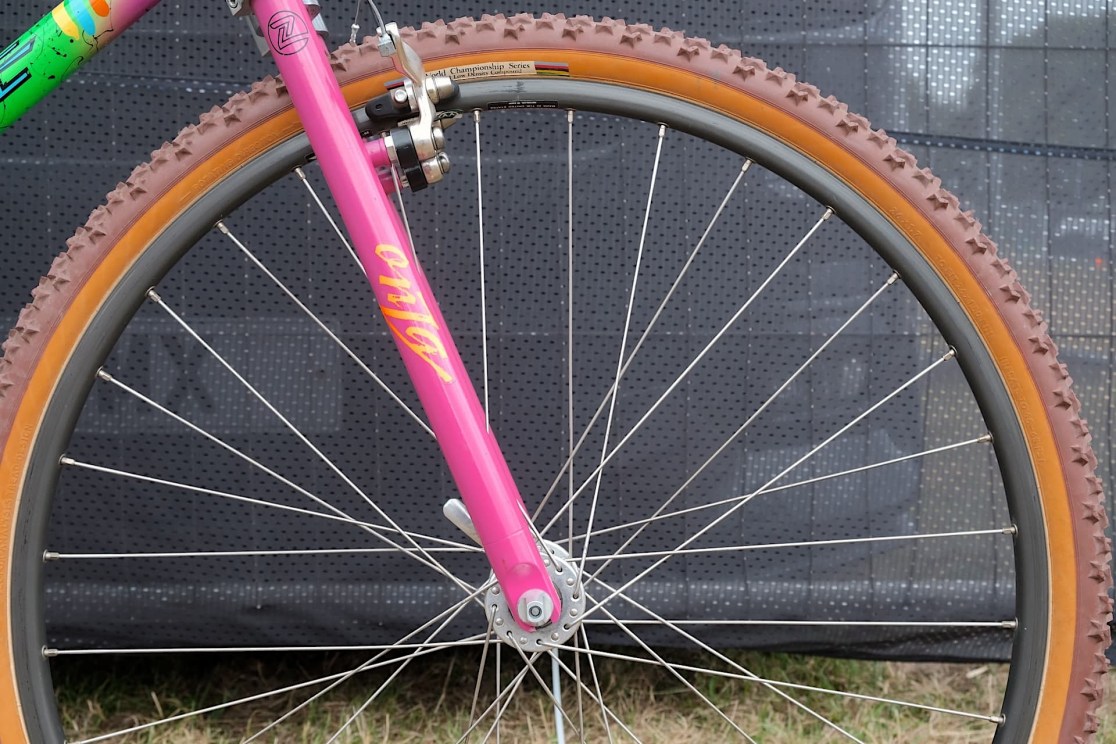 Yeah, those cranks, I mean, they don’t look out of place now. They look like some of the nice high-end CNC’d stuff you get now. And then on to the Bontrager. The fork, obviously.