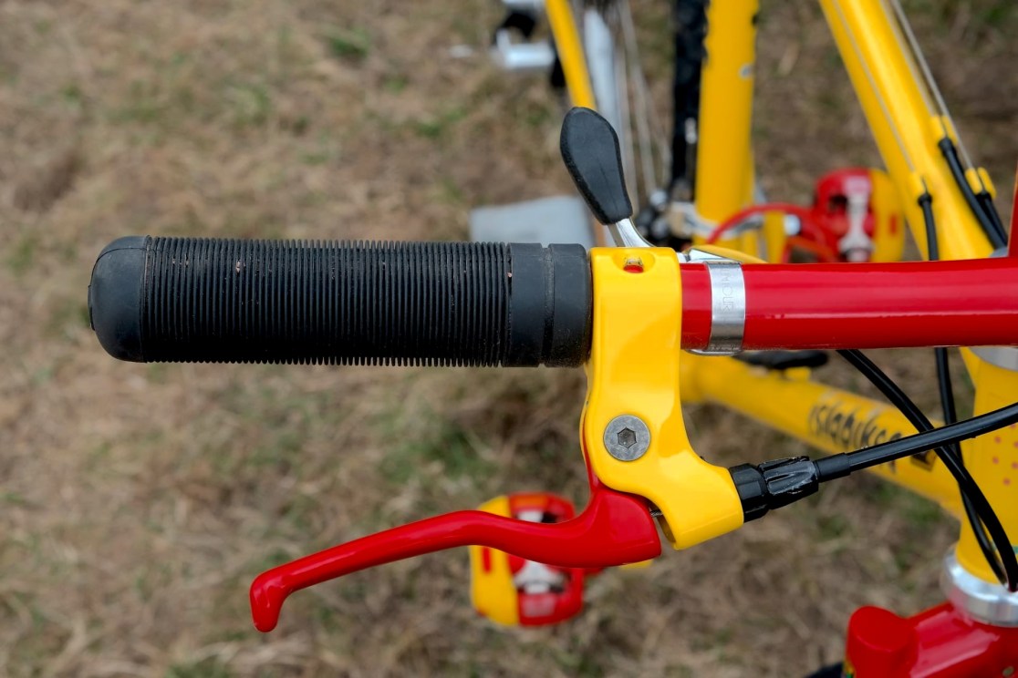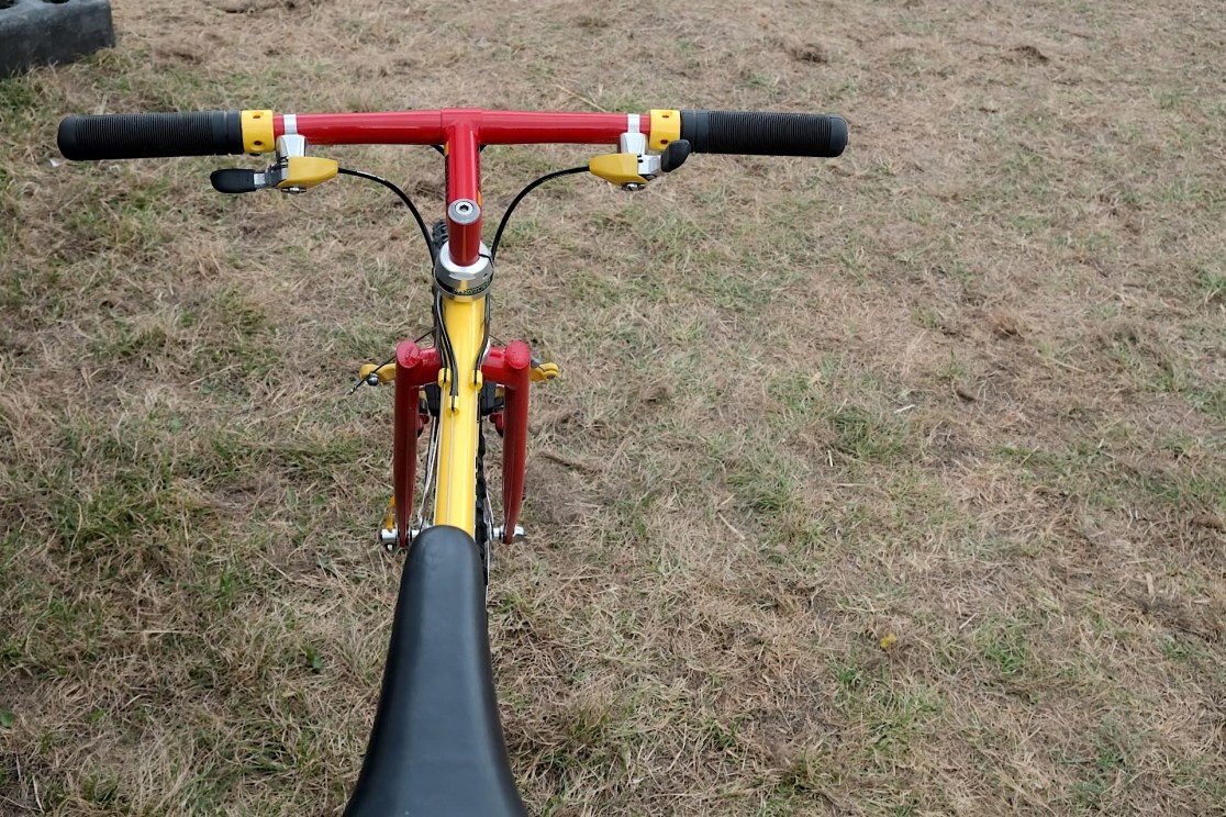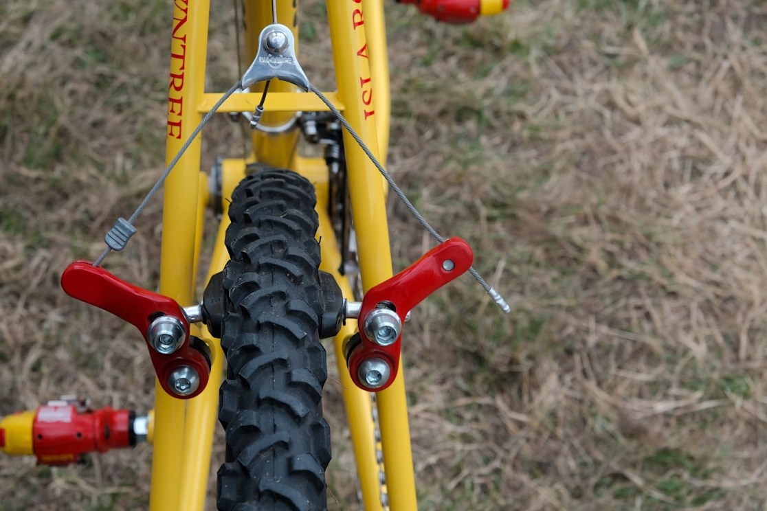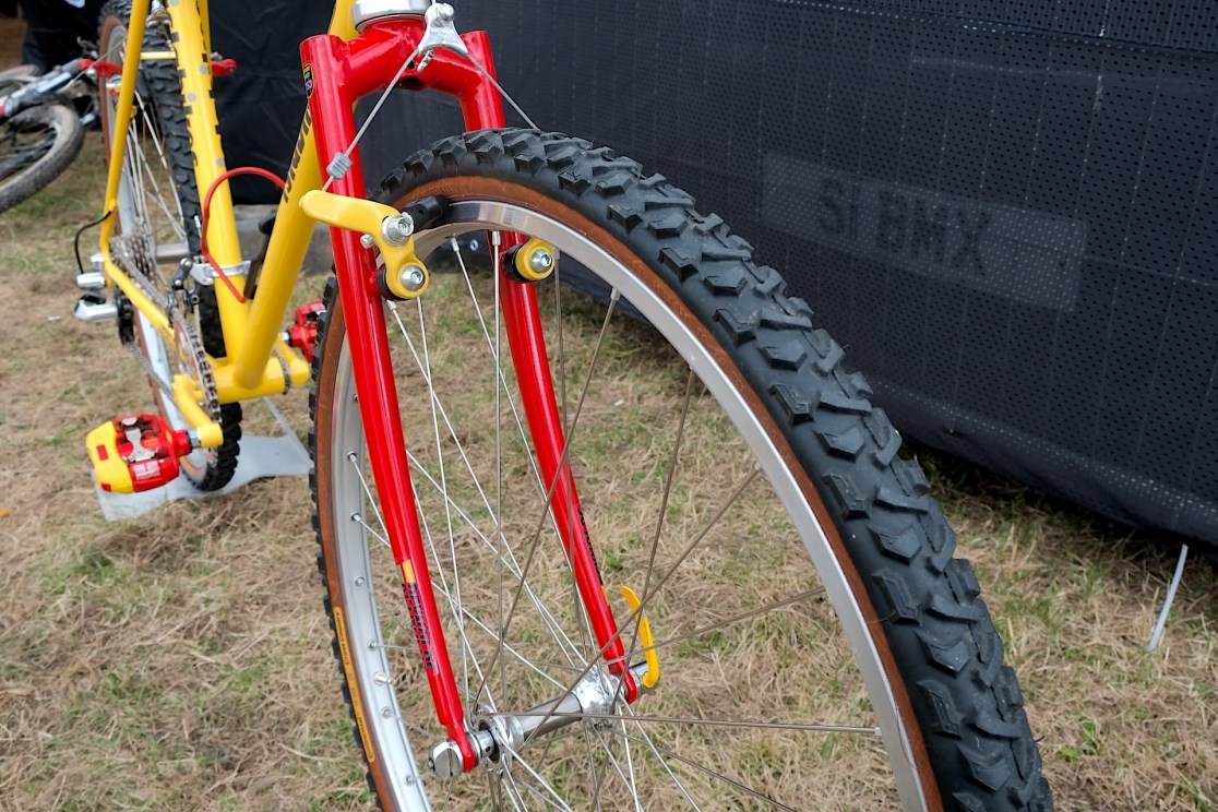 At the Retrobike Show and Shine at the Malverns Classic, this yellow and red bespoke racing machine was on display. It’s one of Isla Rowntree’s own personal bikes, built to meet her precise ideas about what makes a good race bike, and a bike that fits. For those familiar with her children’s range of Islabikes, you’ll see how she carried these features over to the kids’ range.