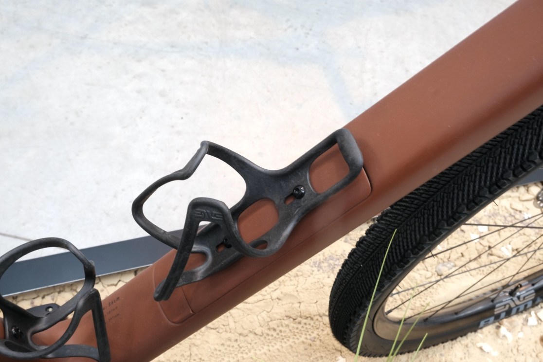 Behind the bottle cage there’s a cargo box. ENVE makes a couple of neoprene carriers or bags that fit inside the cargo area so you can stash your stuff in there.