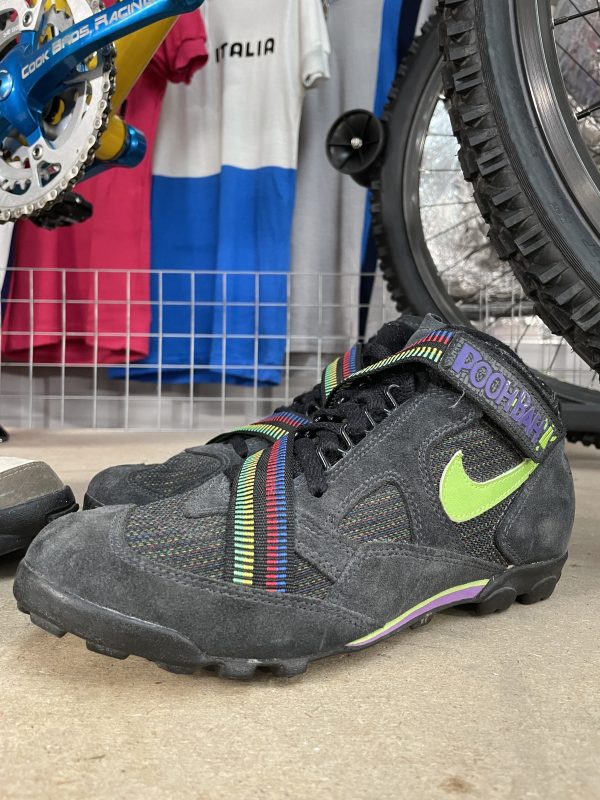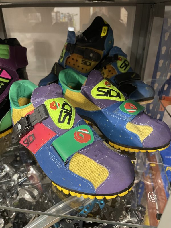 Okay, so if we’re talking about vintage, because I happen to be here with all these vintage bikes, I have a 1992 Klein Attitude in Gator Fade, which was an employee bike. So it’s got a couple of nice features, and it’s got a simple 7-speed Thummy XT groupset, so I like riding that. I’ve got a Moots Route 45, which is my gravel bike, and so with the wet weather that we’ve had all year, that’s been a favourite. And I’ve got an ENVE Melee that I don’t ride too much, but I’d like to change that.
