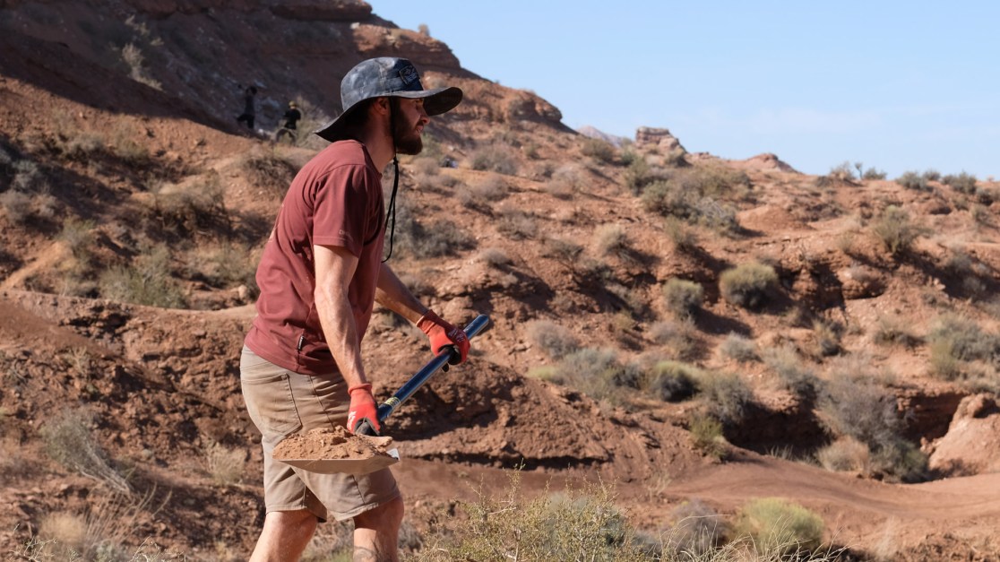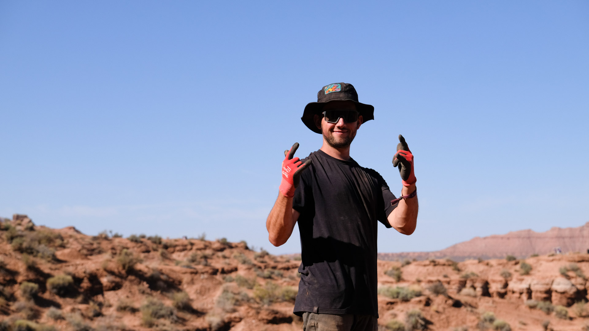 Of course, you don’t just get to show up at Rampage, and Tom tells me he’s been working to get accepted for three years. He’s visited Europe’s mini-Utah in the Black Hills of France and worked on his exposed and loose ridge riding skills. He’s spent a bunch of time riding in New Zealand with former Rampage competitor Connor MacFarlane. There, Tom has ridden the terrain on which Connor filmed his Rampage application video – and got accepted. And of course there’s Tom’s slopestyle feats, including his world record 110ft backflip at Darkfest. All of this stands him in good stead for the technical side of riding at Red Bull Rampage. But before you can ride, you have to dig, and I can’t help wonder if he’s underestimating what lies ahead: