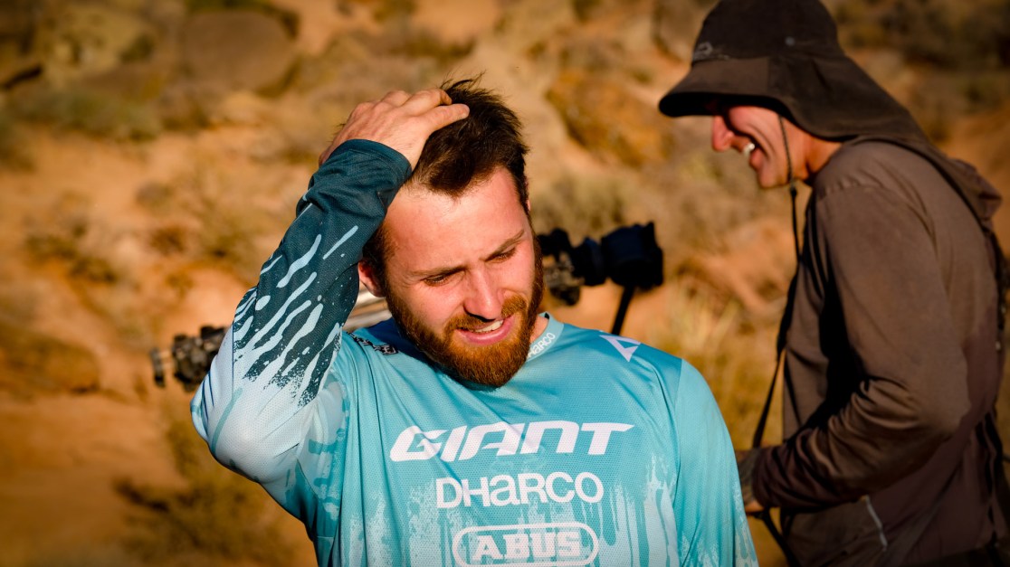 When I realise the canyon feature is called the ‘BFC’, I clock that this is not the name Tyler had picked out. That’s because Tom went first. And that acronym does not stand for ‘Big Friendly Canyon’. Tom gets another go at landing it, and manages to stick to his line, sort of. It’s rubber side down at least, for what Tom calls the ‘wildest 10 seconds of his life’. Wind keeps him from trying again on Friday evening, and indeed until his competition run.