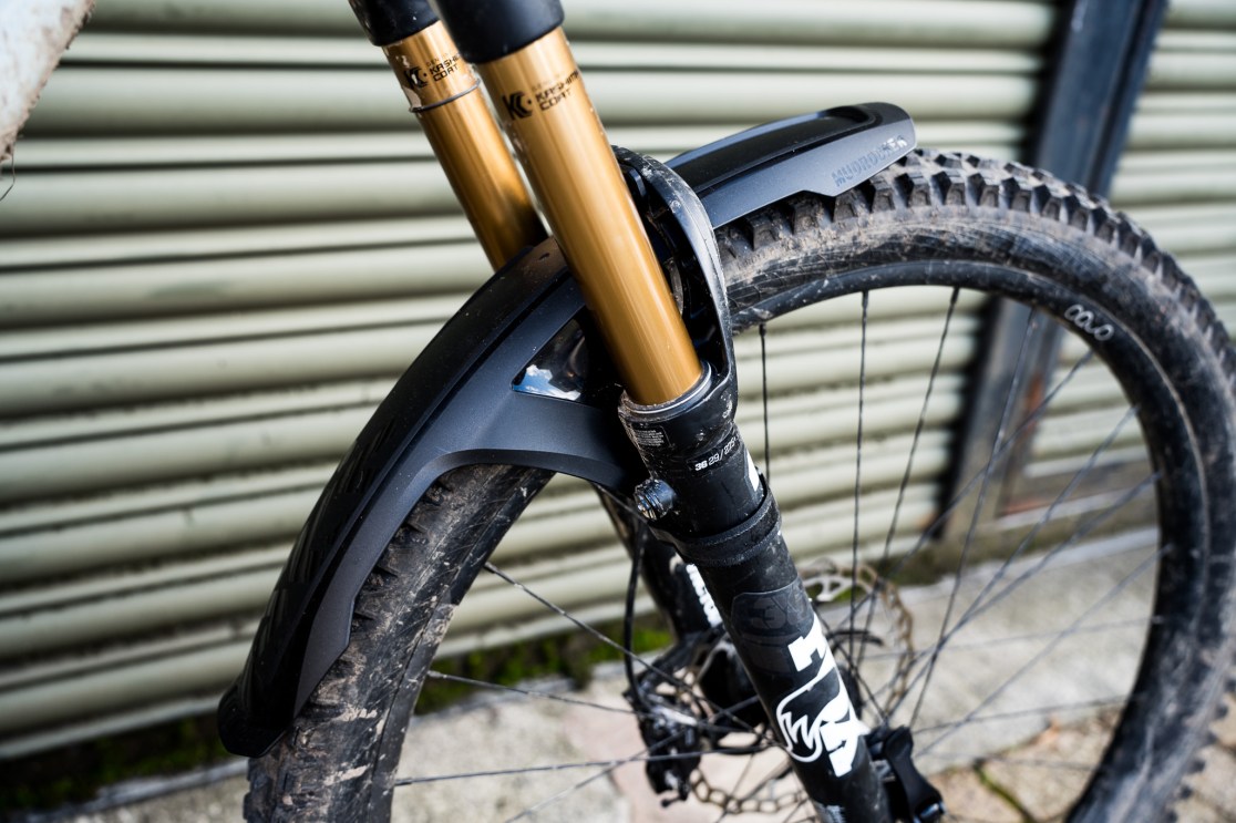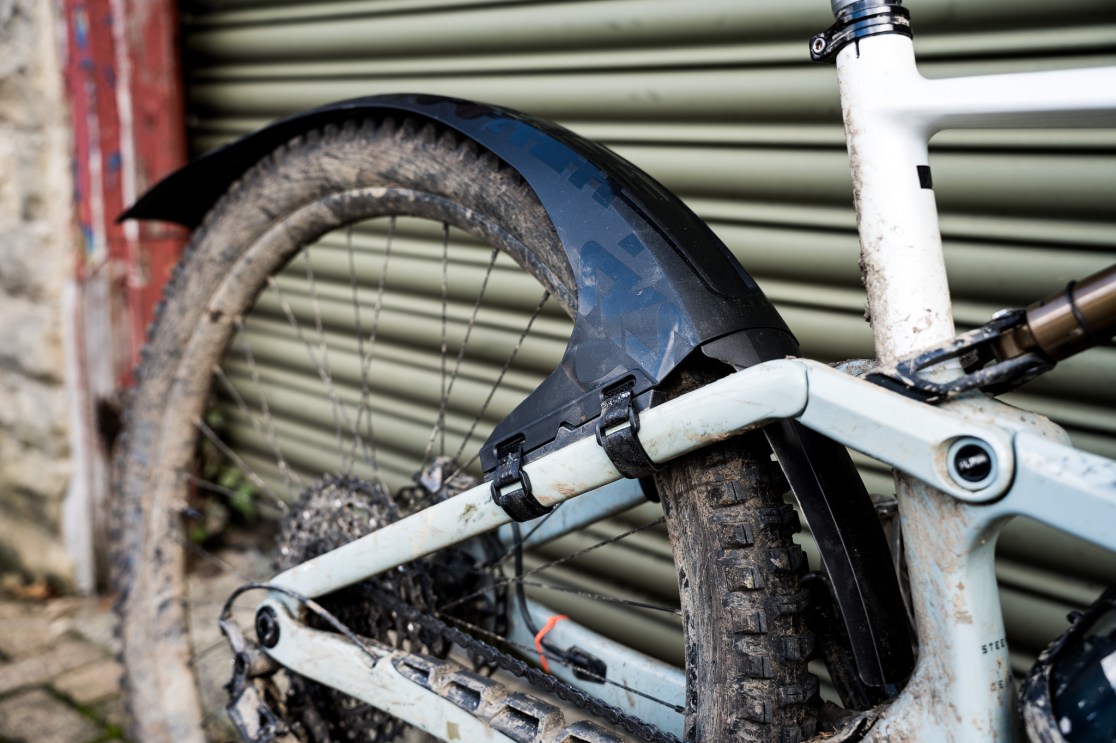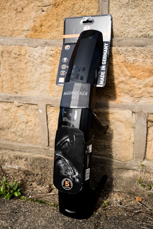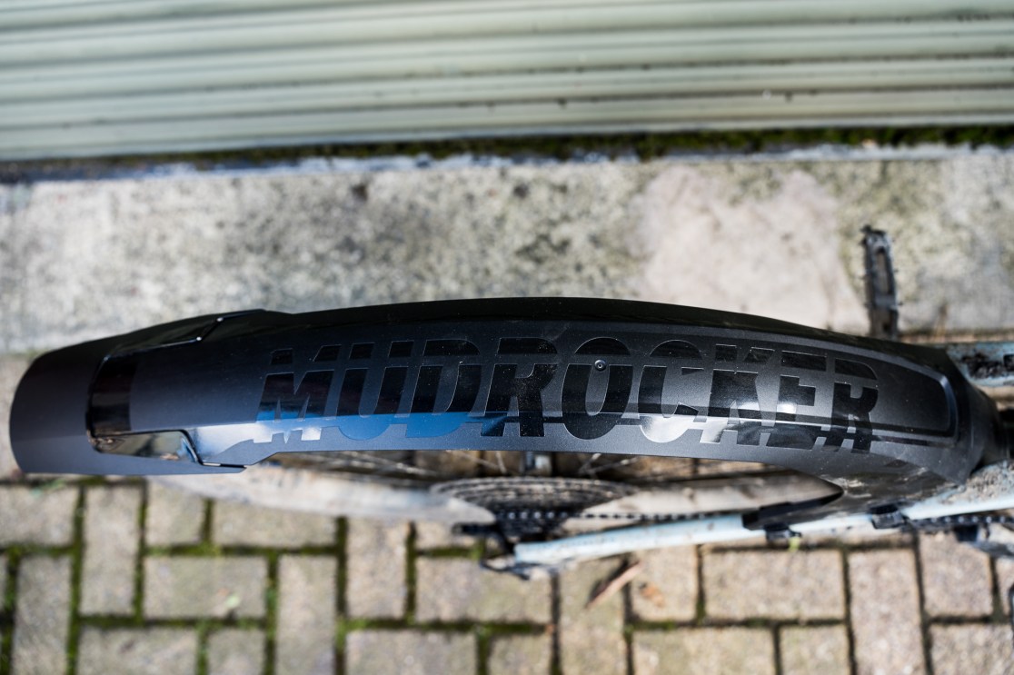 Yep, mudguards. It is time. I [Benji] am a rear mudguarder. Don’t @ me. Well, you can if you want to. I have no shame about it. What I do have is more comfort and less stressed washing machine. This is a pair of Mudrockers from SKS. The front mudguard can attach in various ways: trad zip ties, or rubberised Velcro straps, and/or a bracket-and-screws into the rear of the fork arch. The rear mudguard has slightly slanted rubber anchor feet for fine tuning how the guard lies on the swingarm in relation to the rear tyre. Yes, we have mounted it far too close for these pics! The rear guard also has an optional extender. Which you should use. From our experience, rear mudguards need be really, really, really long for them to do the job properly.