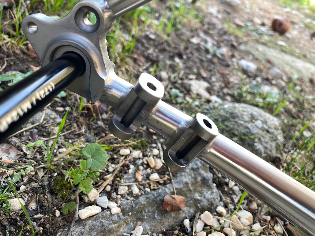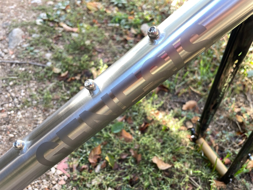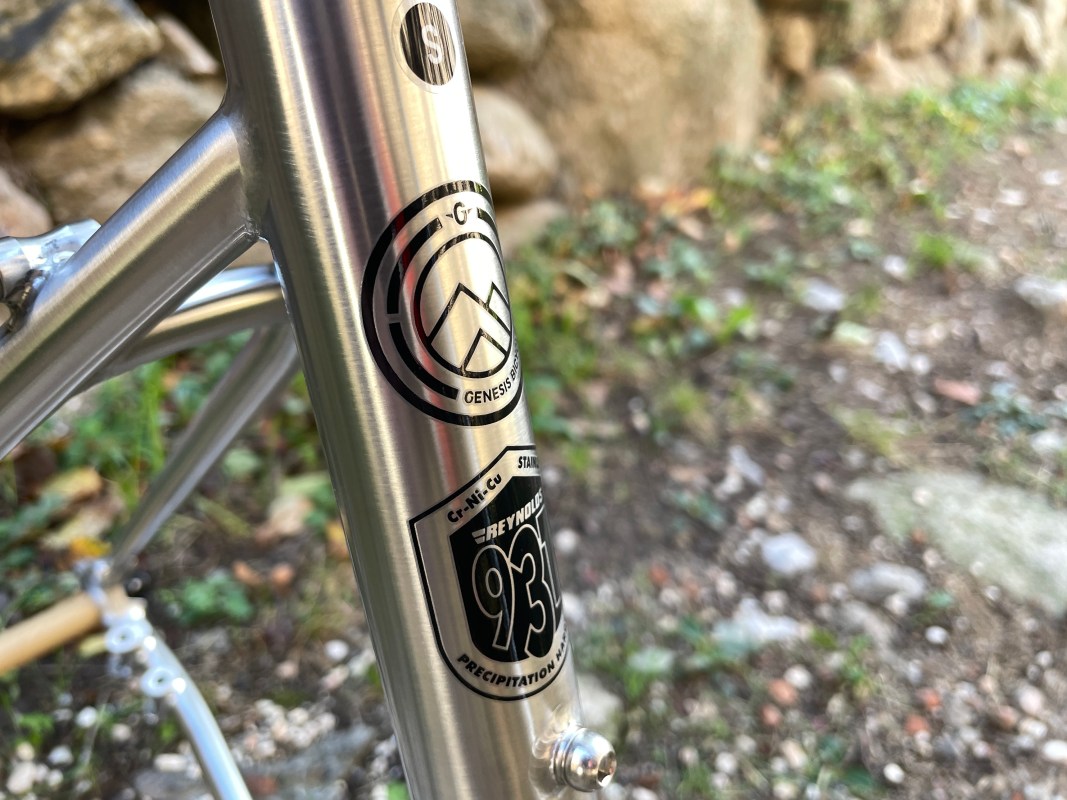 No, it’s not titanium (even though it costs nearly as much…) – this is a Croix de Fer – the all-round gravel, ‘groad’, ‘mixed media’ bike from Genesis – in steel. Reynolds 931 stainless steel to be precise and it makes a return to the Genesis lineup, having previously appeared in stainless a decade ago. Since then, there have been many changes: the bike now sports a T47 threaded BB, tapered headtube and room for 47mm tyres (over the 35mm capacity of the 2014 version). There are many, many braze-on mounts and very flexible cable routing options. The frameset comes with a carbon fork too.