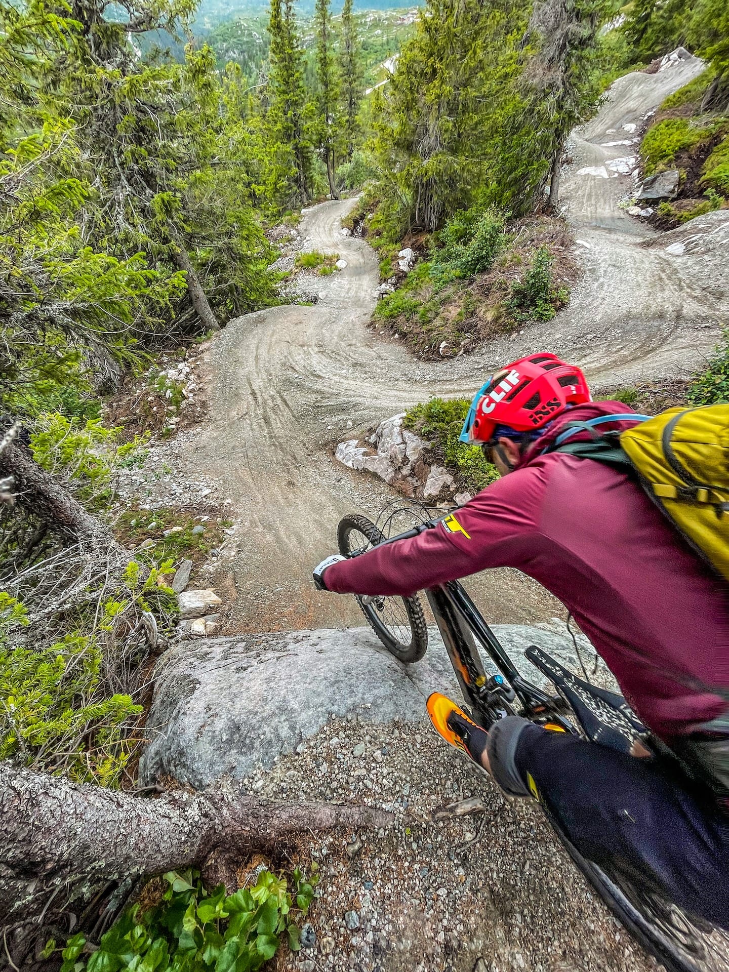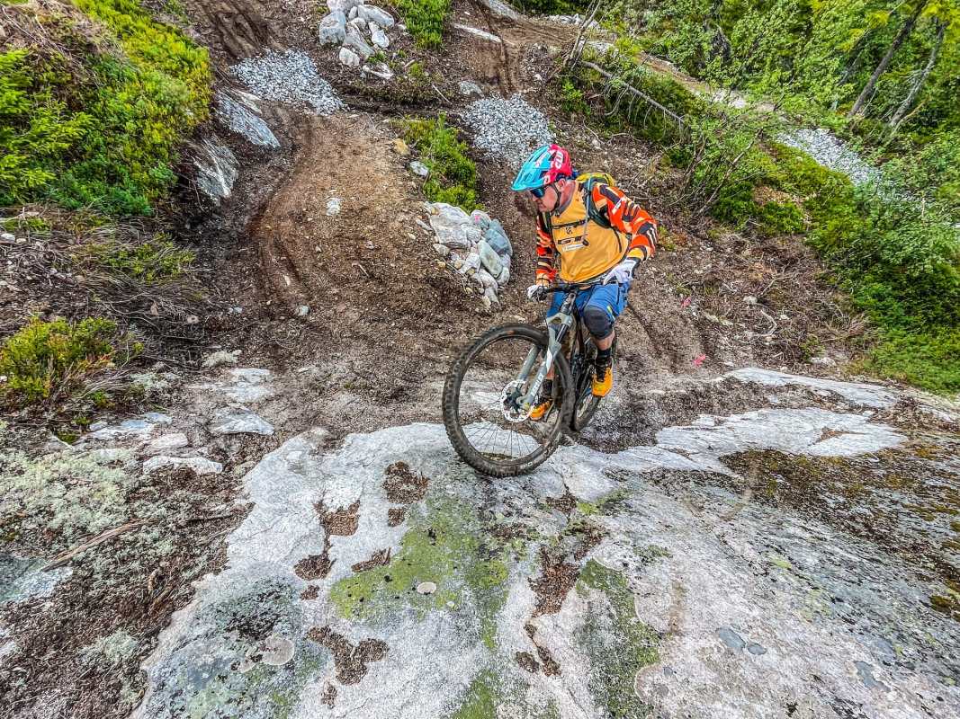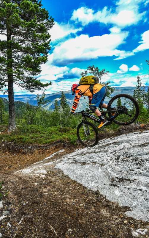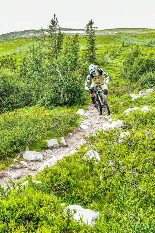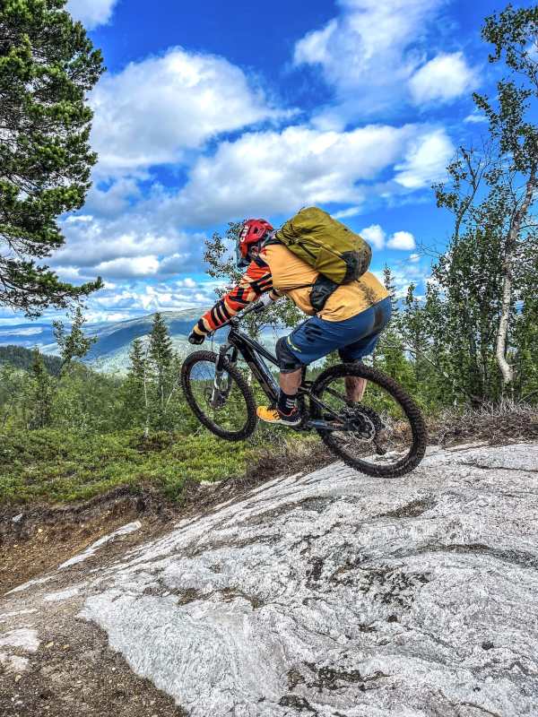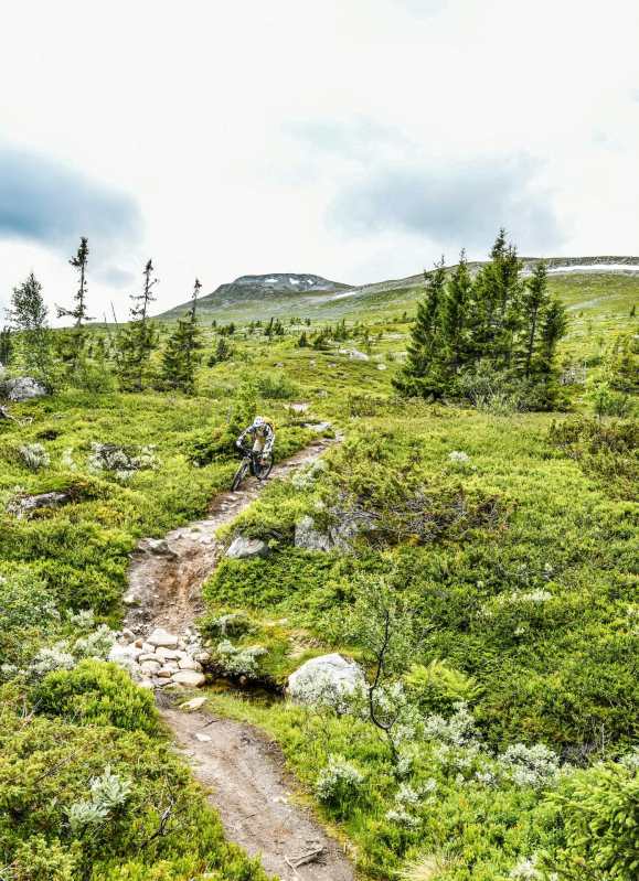 Norway is a land of lakes, fjords and mountains, houses with roofs that look like wildflower meadows… and Vikings. To the north is the Arctic Circle and closer to the south of the country is Fjell Park trail centre at Hogevarde in the Hallingdale valley, two hours northwest of Oslo. It is here, with its expanding trail network, and for now lacking an uplift, that Hans found the ebike perfect for climbing the mountain, pain-free, to then be able to enjoy the huge network of trails. Berms, rollers and flow carved through the natural landscape of pine trees, stream crossings and huge granite boulders that become part of the experience. Whatever the World Trail crew builds, the result is both eye candy and ride candy.
