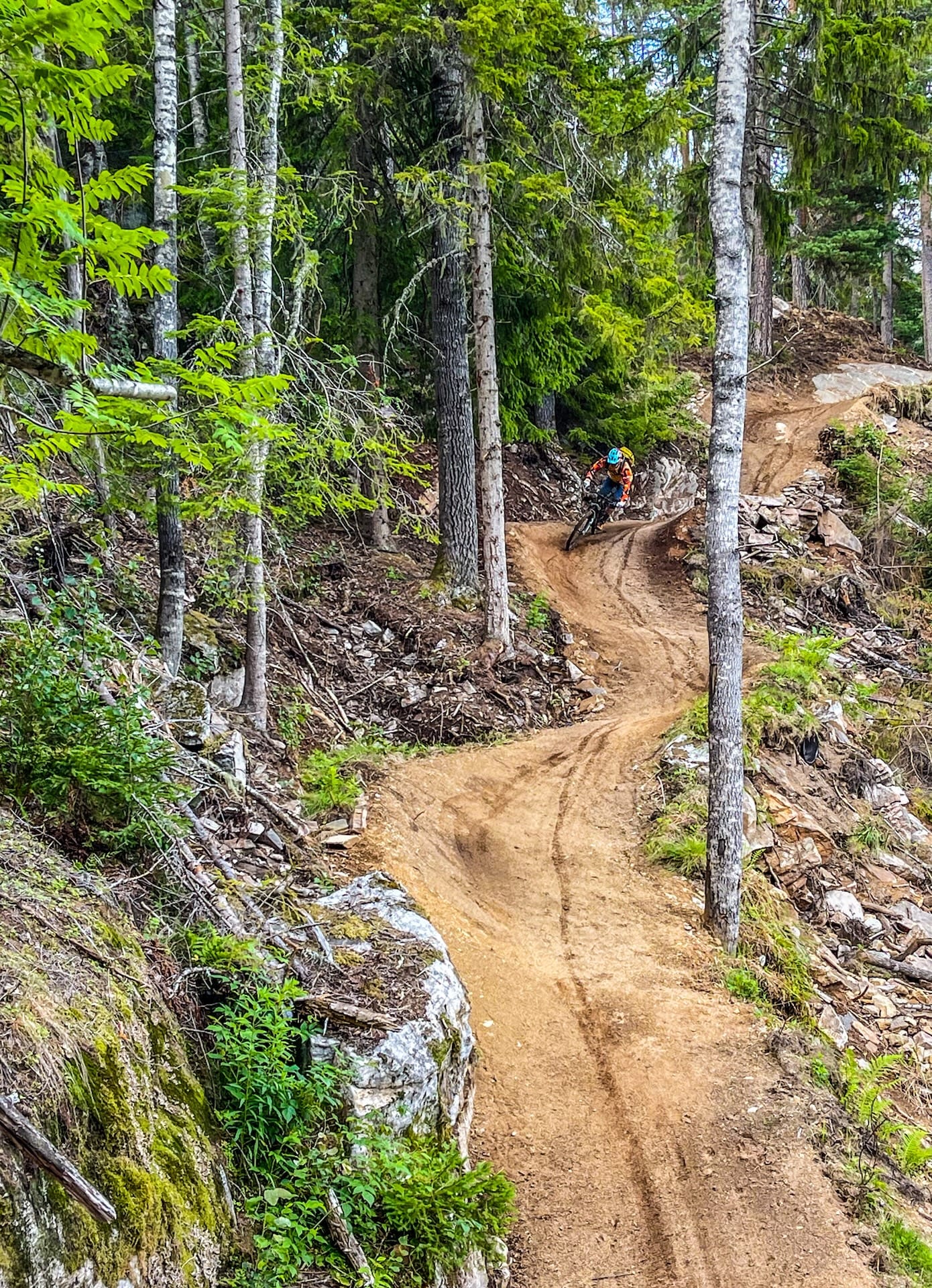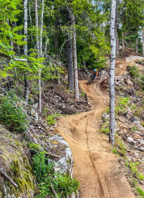 Dropping and rolling down the flowy trails; the scenery is exquisite, the dirt is smooth, the A and B lines offer options for every level of rider. You want to wall-ride that rock face? Sure, go ahead. You want to ride along the top and gently roll down? You can do that too, or hit a jump to the side. All trails are built just for bikes, so there are never any surprises or awkward changes in pitch or tempo.