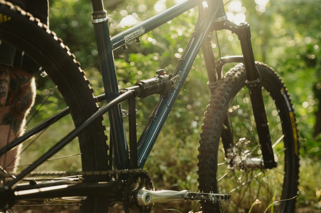 It cranks like a hardtail, with the explosive punch of a single speed. Throw in a big hit, drop or compression and the suspension comes to life, working when you need it to. Just enough movement for silly, scary speed. Just enough for a raw, rowdy, lo-fi, pedal-all-day, one-of-a-kind ride.