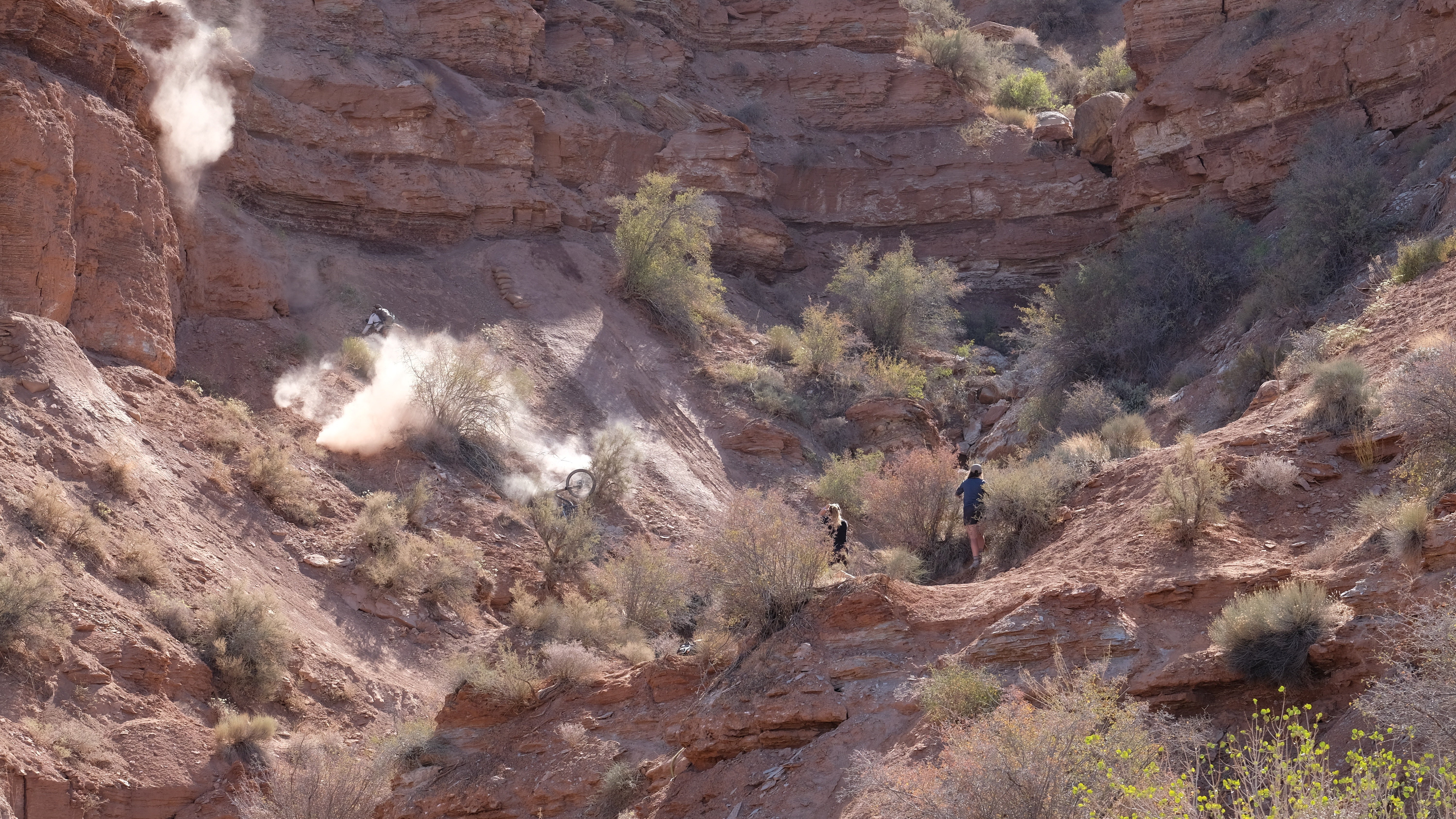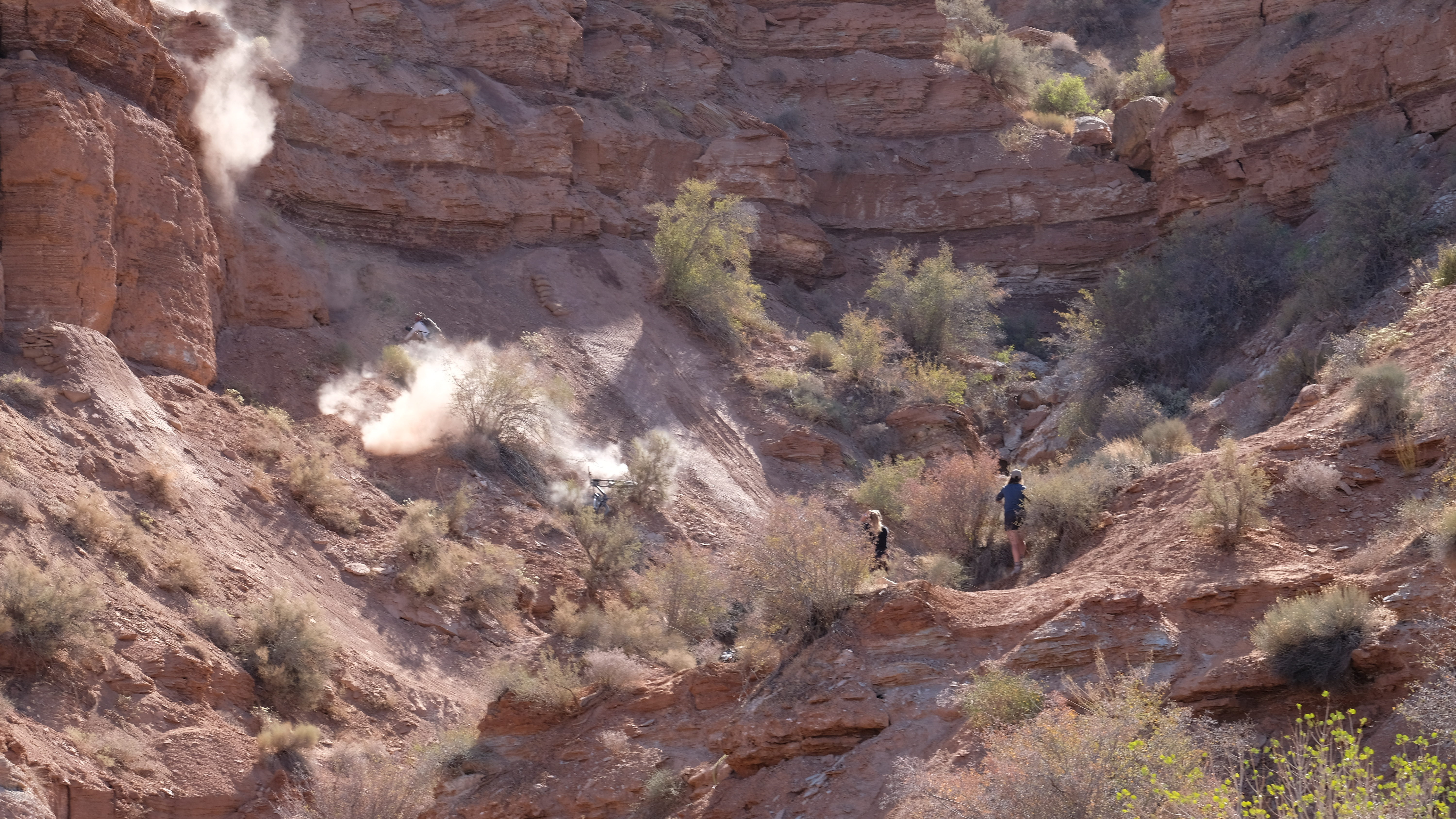 Controversy around the scoring is as traditional as the wind, with some thinking that the wait for second runs was too long. Others thought tricks were being given too much recognition over raw mountain bike riding skills. And others were too tired, hot and dusty to argue. After the podiums, everyone piled into shuttles, or traipsed out through the desert, leaving the hillside to the elements – and perhaps a few future Red Bull Rampage hopefuls, who will try out the lines when the cameras aren’t looking.