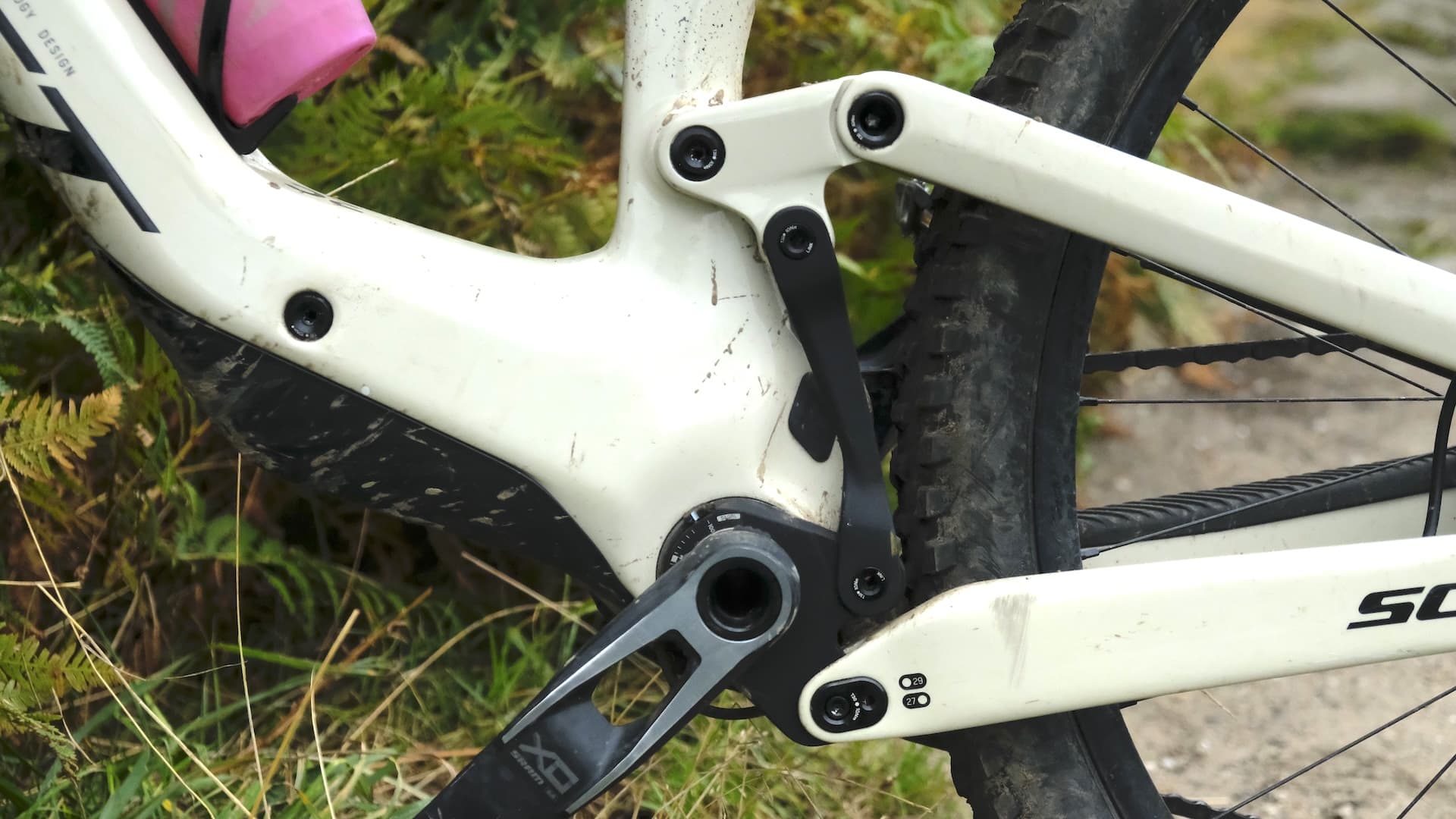 What about sag? When it comes to setting sag, it’s not done via an O-ring on the rear shock. There’s an easy to read sag indicator built into the main BB pivot housing.