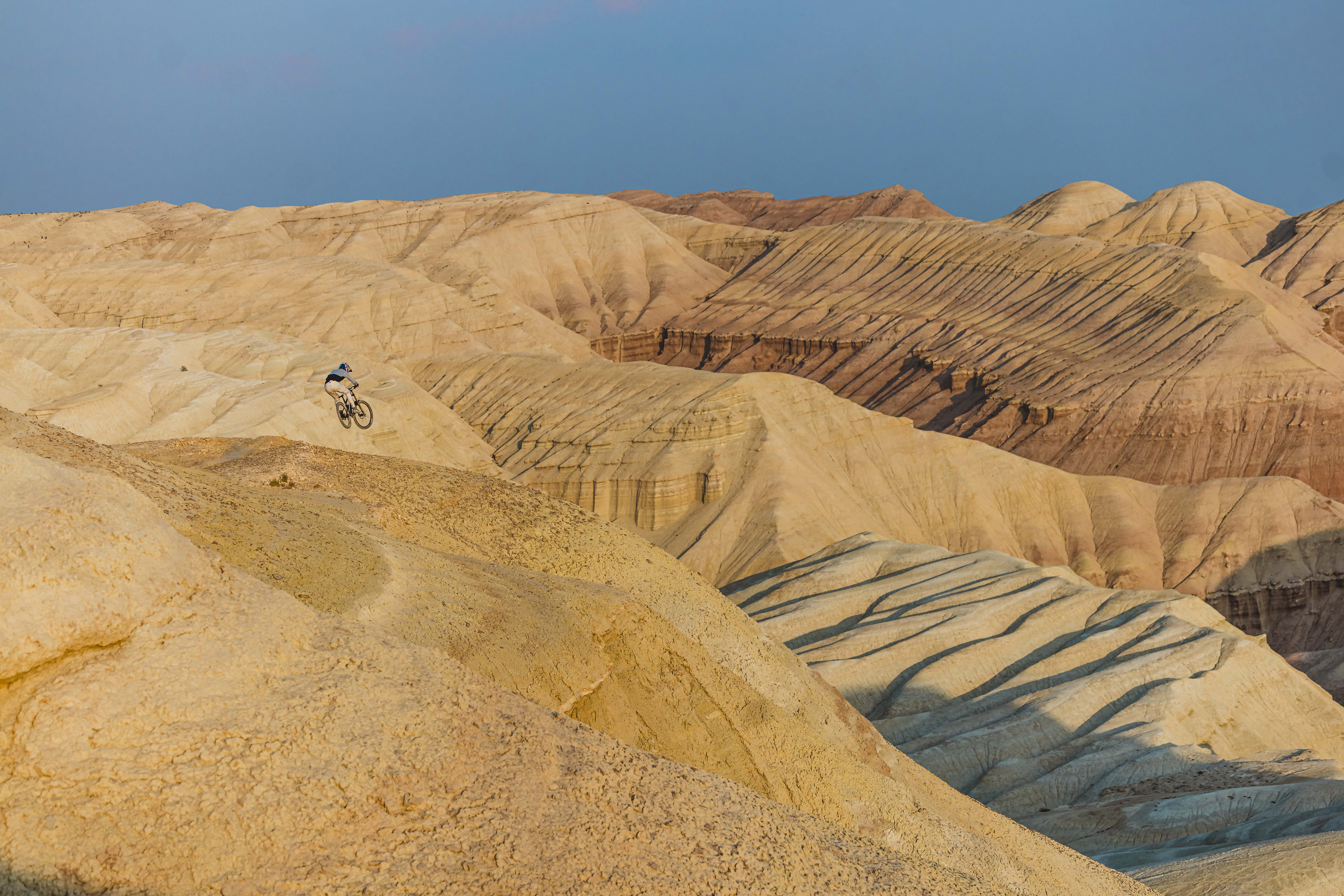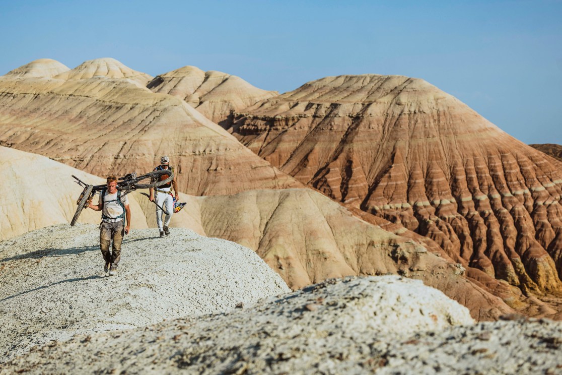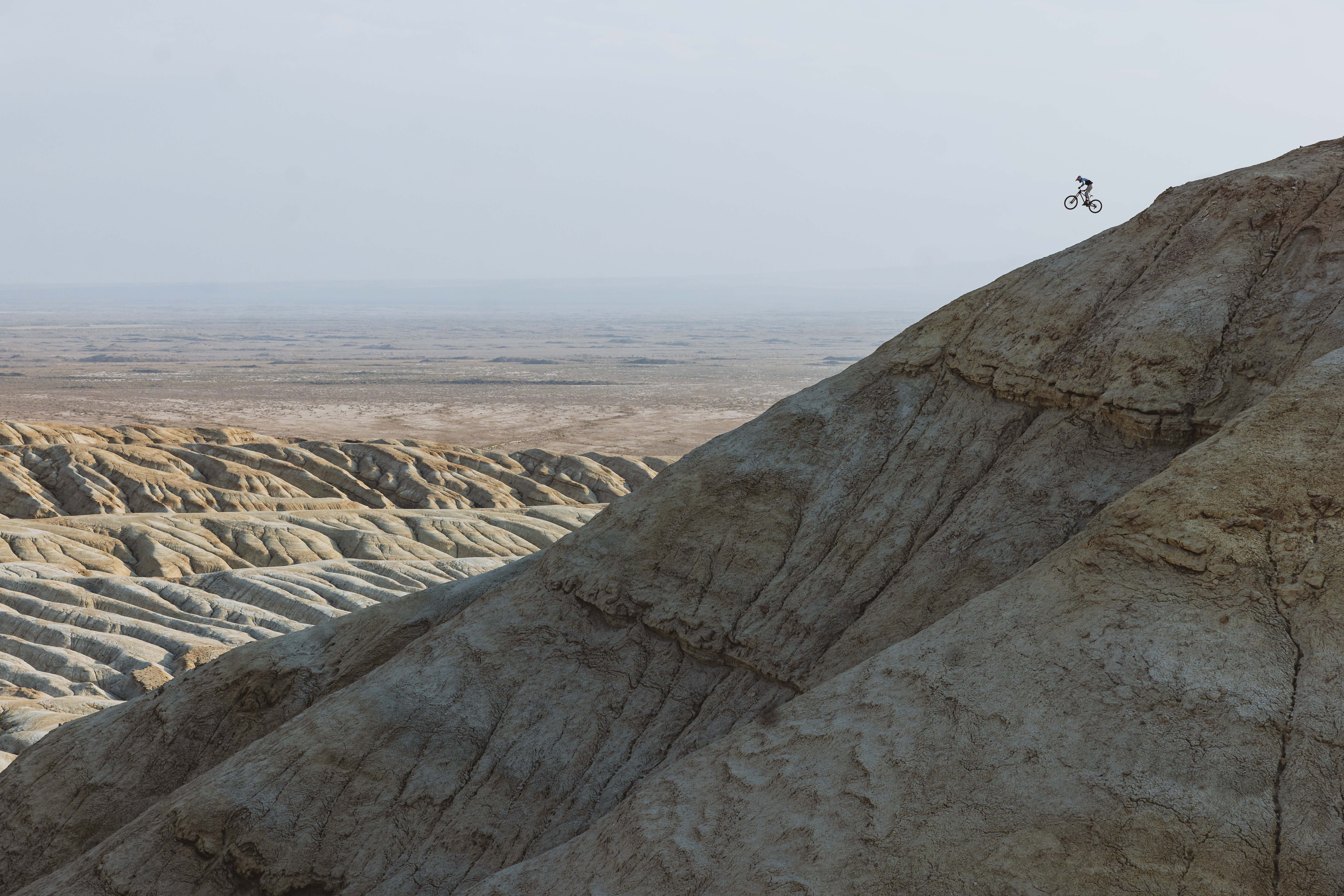 From the bustling cultural hub of Almaty to the dramatic desert slopes of Altyn Emel National Park and Bartogay Lake, the country presented unique and demanding challenges unlike anything the team had faced before. The terrain, reminiscent of the iconic lines at Red Bull Rampage, allowed Gee to push his riding to new extremes, and it wasn’t just about the physical challenge; the mental stakes were also heightened by the sheer isolation. Far from any form of civilisation and reliant solely on a satellite phone for emergencies, the margin for error was nonexistent.