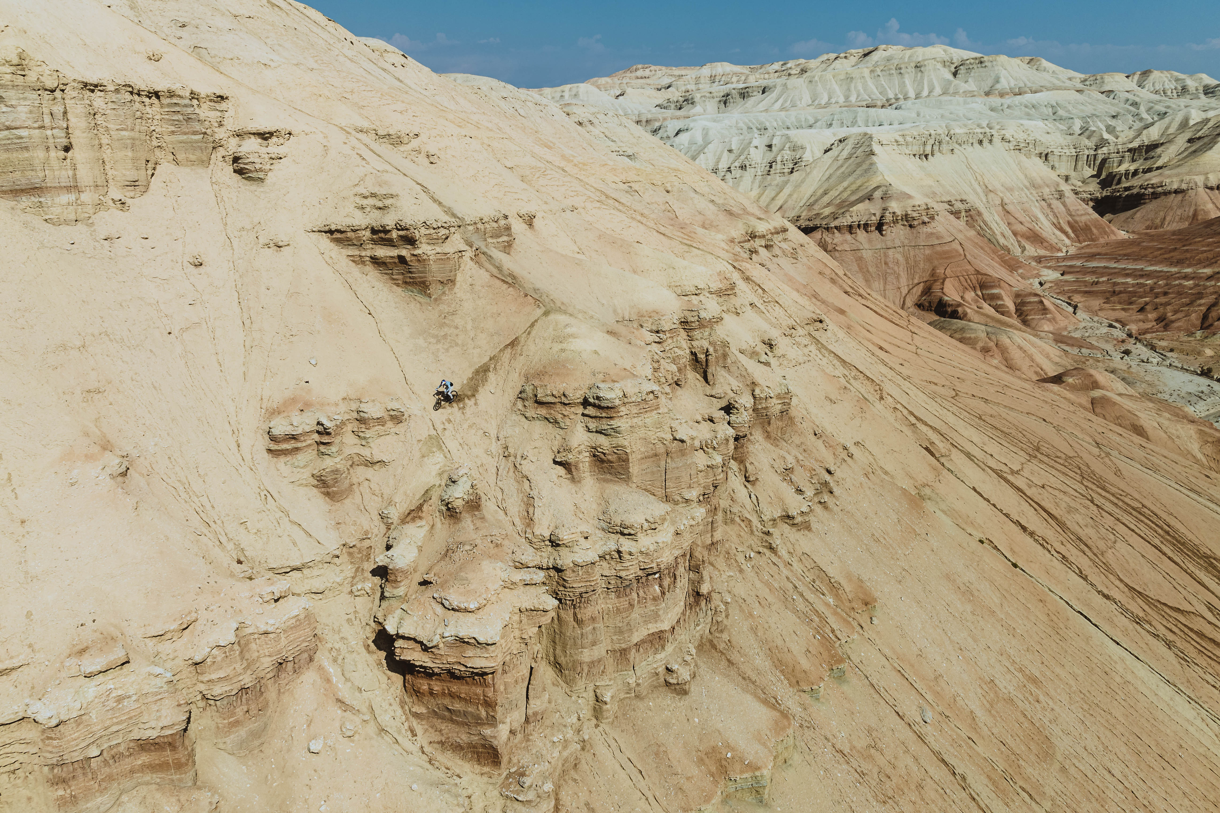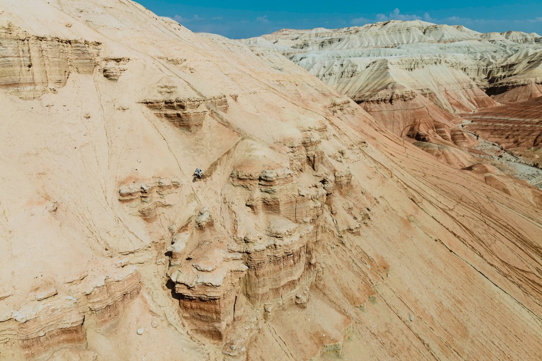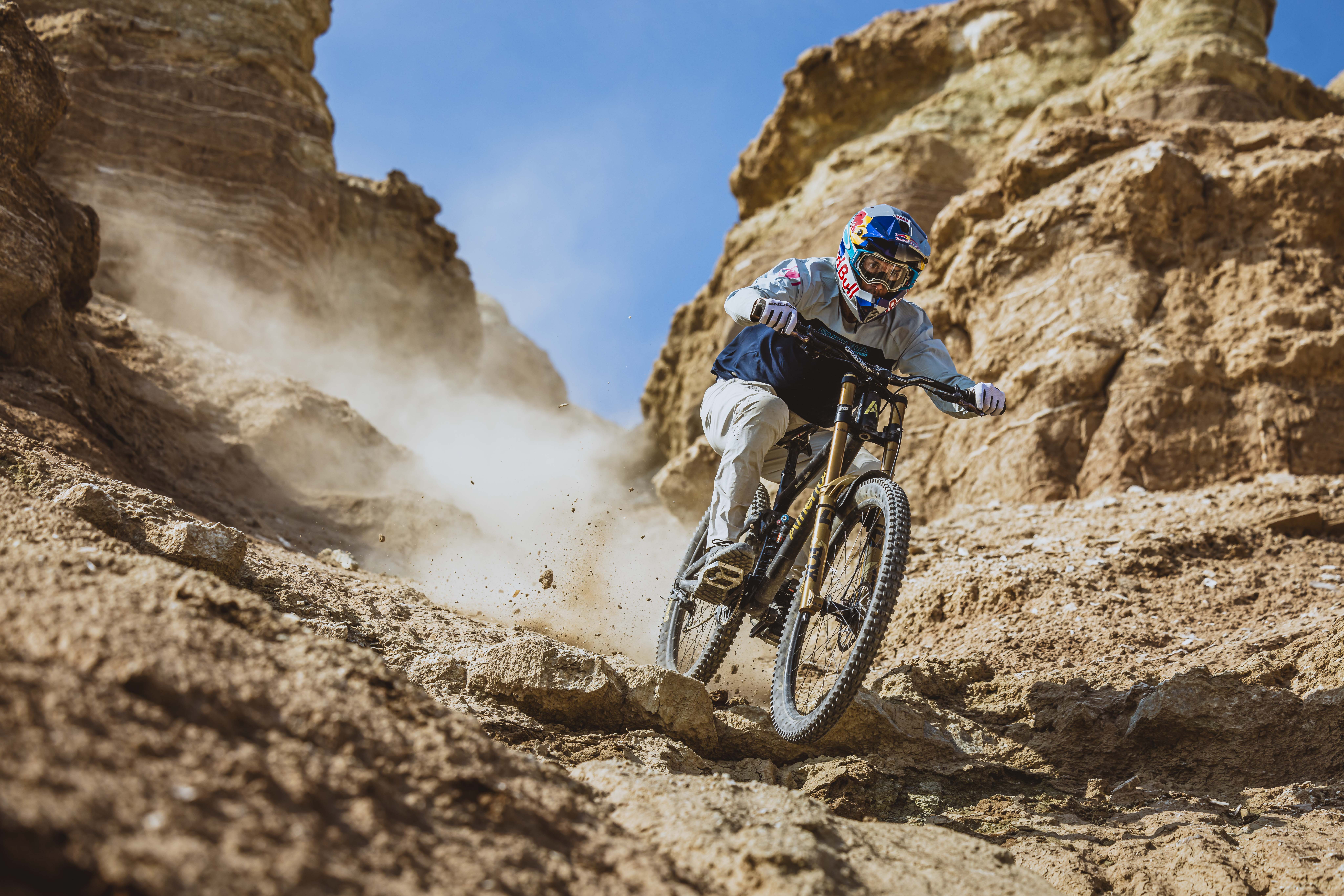 From the bustling cultural hub of Almaty to the dramatic desert slopes of Altyn Emel National Park and Bartogay Lake, the country presented unique and demanding challenges unlike anything the team had faced before. The terrain, reminiscent of the iconic lines at Red Bull Rampage, allowed Gee to push his riding to new extremes, and it wasn’t just about the physical challenge; the mental stakes were also heightened by the sheer isolation. Far from any form of civilisation and reliant solely on a satellite phone for emergencies, the margin for error was nonexistent.