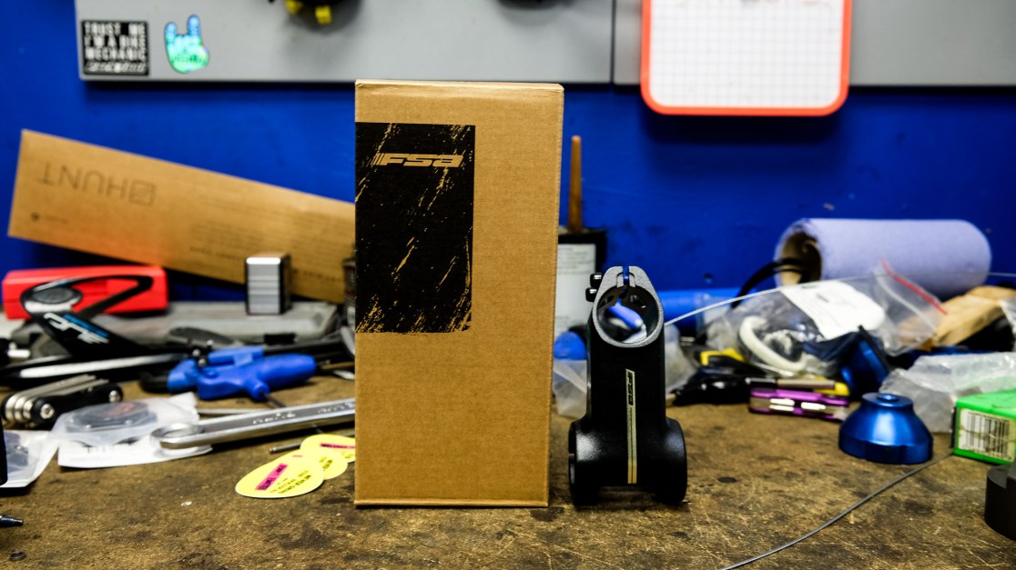A stem so far beyond our comprehension that we’ll just let FSA gush forth: “The centerpiece of this innovation is the new stem design featuring a 2-bolt clamp system, which significantly reduces weight, increases durability, and speeds up on-site bike maintenance. Quick adjustments to the setup are crucial for allowing athletes to test different configurations with minimal downtime—a true marginal gain. Additionally, the -20° angle has become a standard in competitive cycling, enabling a more aggressive riding position, ideal for high-intensity race situations. The specific lower profile design ensures that the stem can be mounted on any frame, even those with a pronounced head tube area that typically prevents the installation of negative angle stems.”
