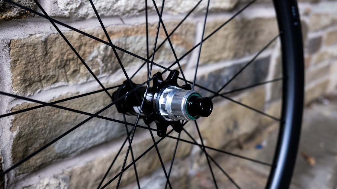 Carbon wheels designed for XC (and the less extreme end of trail biking maybe?). Why no grrr riding in these? It doesn’t actually rule out any sort of riding but the direct-pull two-cross spoke design and 28mm internal width are probably not best suited to freeride. Asymmetric rim design (the spokes aren’t all running in the middle of the rim). Variable height rim design ie. the rim is a bit taller where the spokes meet it. The nipples are brass, which is very pleasing. As is the use of 6-bolt rotor mounts. Hookless bead. Two sealed cartridge bearings in the front hub, five sealed cartridge bearings in the rear hub. The freehub of which is FSA/Vision’s PRS design, so is a “helical clutch” (ratchet in other words) with 72 teeth equaling 5° engagement. In terms of weight, we weigh them in the video above. You’re welcome. Spoiler alert: not heavy.