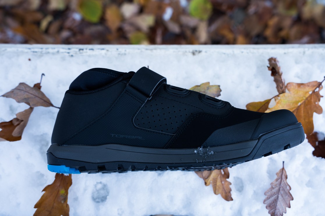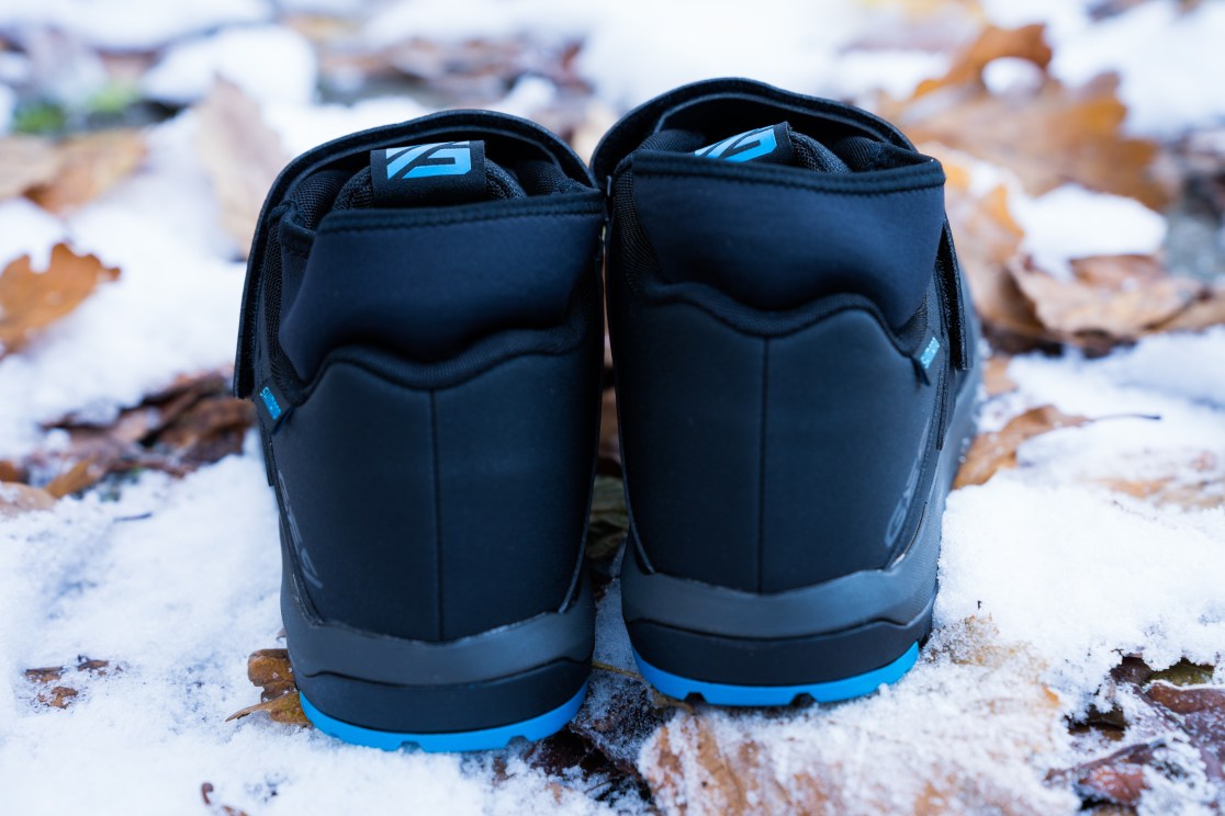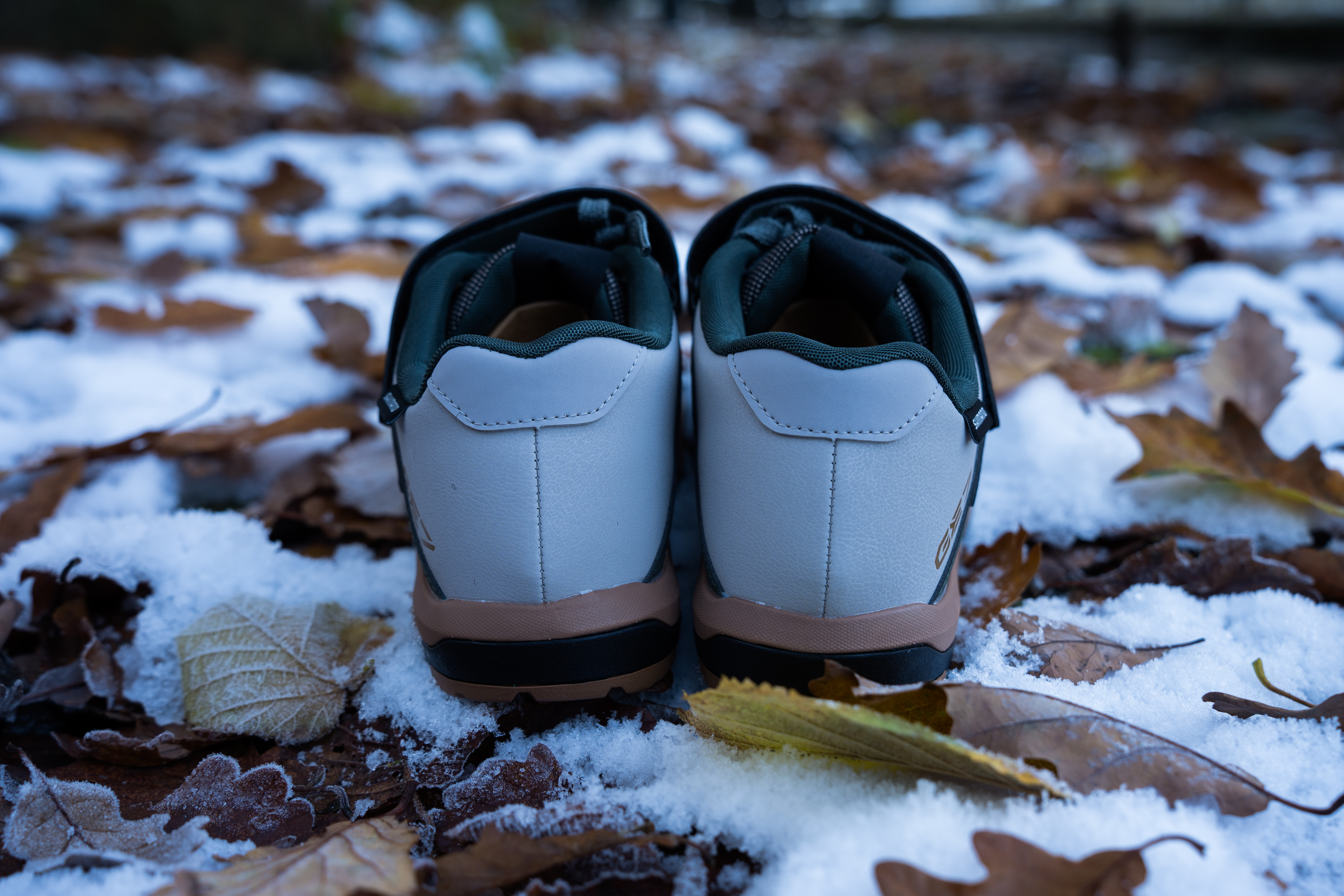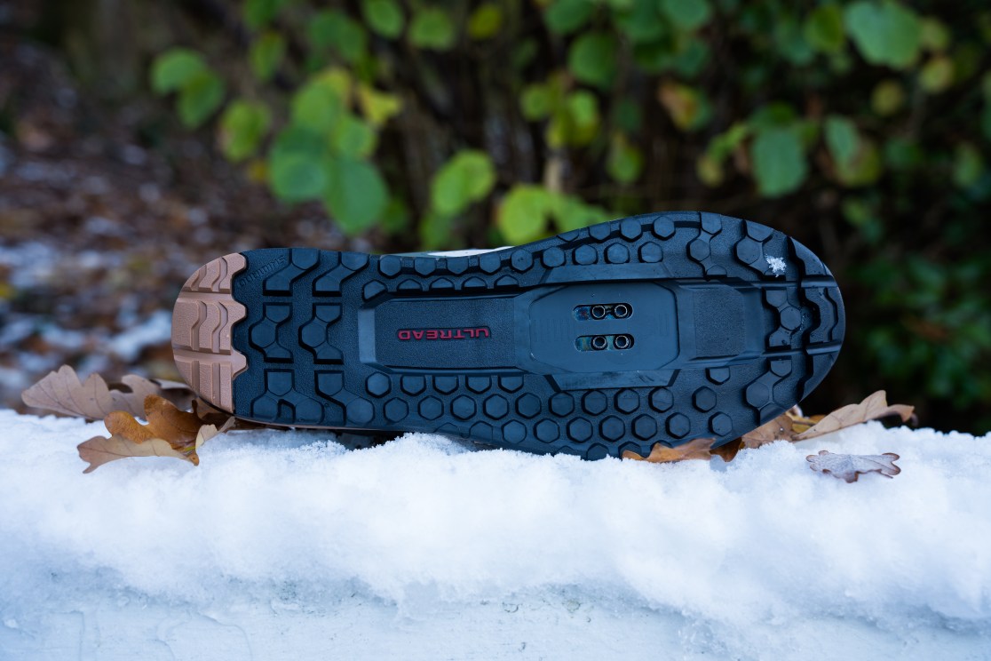 Enduro clippy-sneakers. Featuring Shimano’s genuinely grippy ULTREAD GE rubber compound (which hasn’t really had enough praise in our opinion). The cleat box ‘n’ slots is further back these days so you can place your foot more centred over the pedal axle (if you want to). What else? Updated pedal channel has an expanded toe-to-heel design for improved security when you’re flailing around unclipped. EVA foam midsole. Laces and a big ol’ instep strap. Asymmetric padded ankle collar and reinforced toe cap.