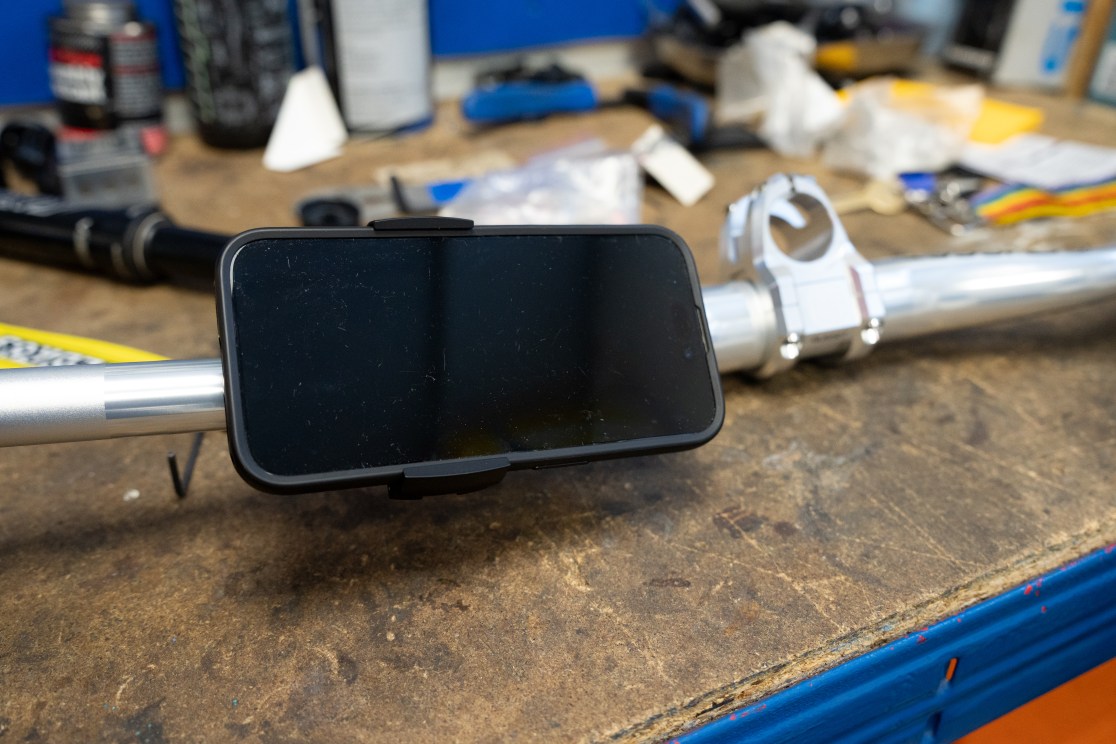 A bit like the item above only smaller (and arguably better executed). Replaces your stem top cap. Very simple to install. Easy to remove, although it doesn’t look too gawky when it’s not in use to be fair. Stats: Phone size Width Up to 83mm with case, Phone size Depth Up to 12.7mm with case, Grip Force 1.5-3kg f.