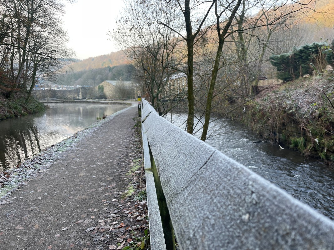 Pedalling along, the canal beside me steaming tendrils into the frozen air, my lead out squirrel sat on the frosted fence ahead.