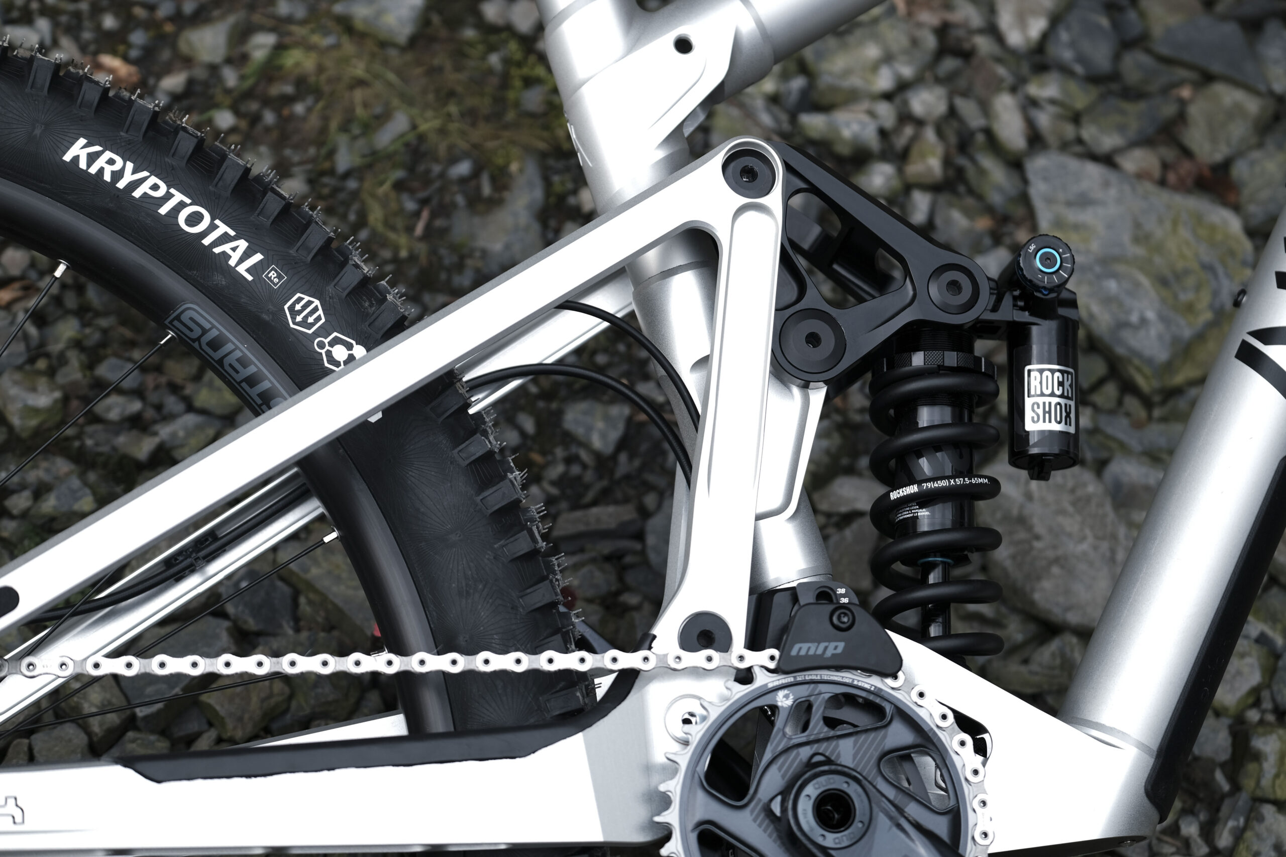 The S170 is a striking silver machine. The straight and round front triangle tubes stand out, brazenly proud of their manufacturing method. Take a step closer and the quality of the machining on the adjoining lugs becomes apparent. Nowhere can you find a machining dwell mark, the final run over these surfaces has been calculated to perfection and emphasis clearly placed on surface quality over production rate and cost. Which is ironic when you consider this is Atherton Bikes’ lower budget offering.