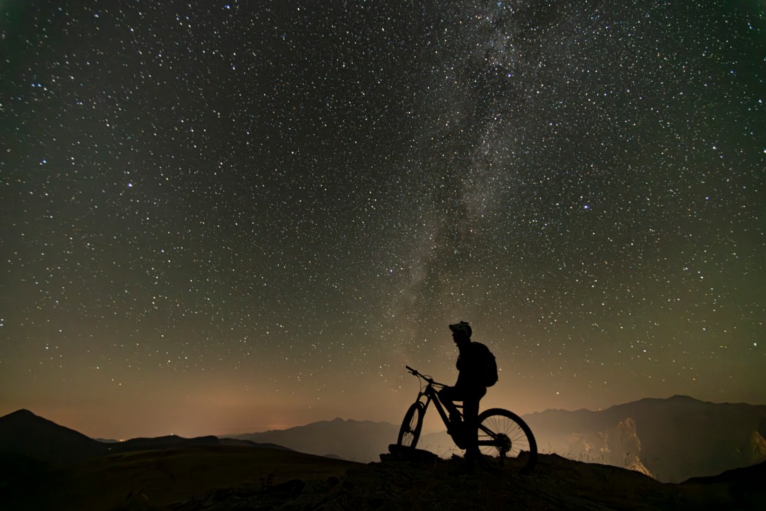 “A photo idea that has been floating around my head for years finally came to fruition in the inky darkness of Sierra Negra. Doug MacDonald of Basque MTB’s silhouette like a statue carved in stone against the Milky Way. Amidst the Pyrenees’ tallest peaks we enjoyed the stars that stretched to the horizon in all directions before welcoming the sun over the horizon.” – Pete Scullion