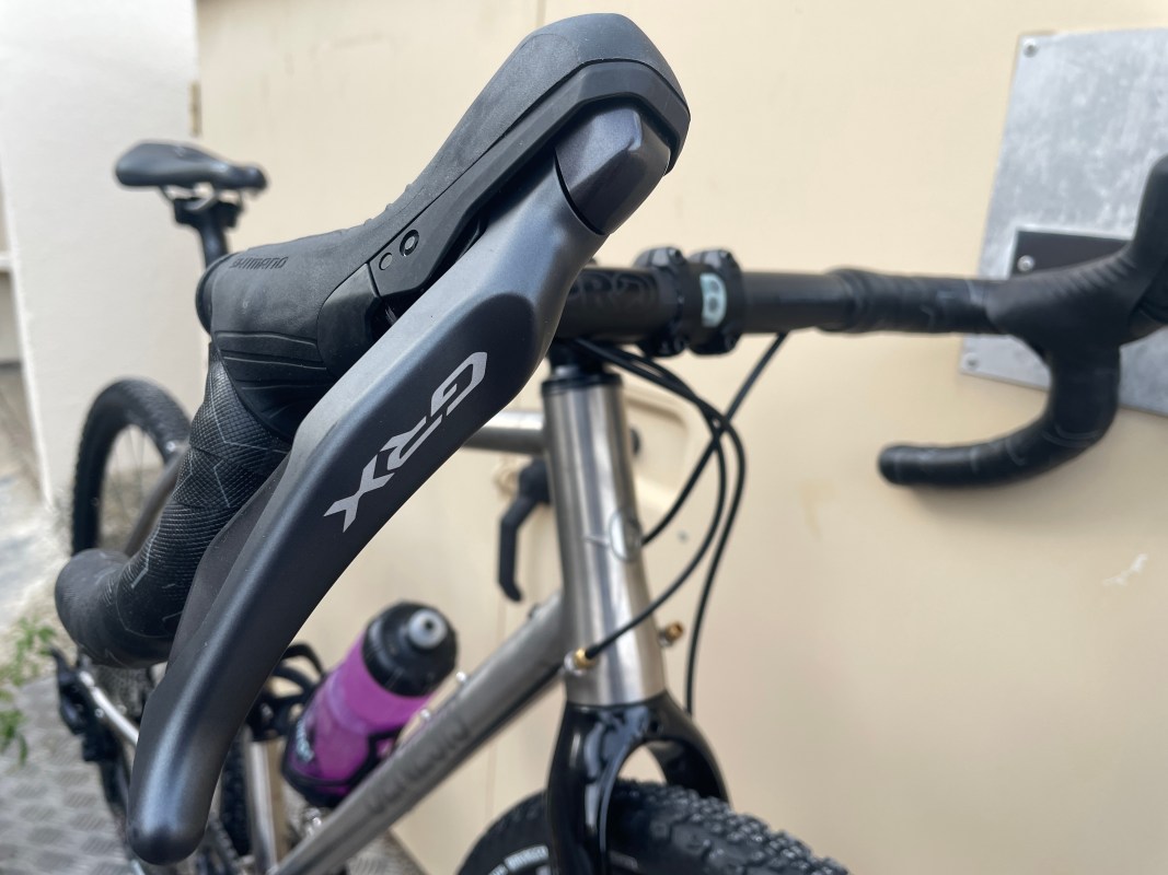 While the hype has followed Shimano’s new, 2024, electronic GRX825 groupset, this mechanical 1×12 system has several big advantages over it, and I’ve put a happy thousand kms onto it over the last year. Now, I’ll admit I have a particular purpose for my gravel bikes, and that is to take on any gravel ‘road’ I find, and I often find the gear range lacking in many gravel setups. This one, though, gives me a low, low of 40x51T while still allowing a good range of gears. That, for me, is the killer advantage of this GRX iteration. You can’t (yet?) get this gear option on Di2, so for me, this setup is fantastic. And combined with Shimano’s strong brakes, comfy hoods and crisp shifting (plus a left lever option for dropper actuation) this is my favourite gravel setup right now.