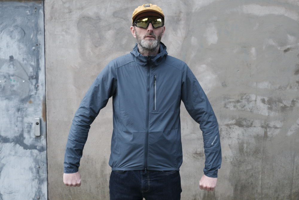 A lightweight ‘Lake Blue’ layer from Madison. A stretchy fit, wind resistant jacket that is easily compressible and packable and can be stuffed into its own pocket when not in use. You don’t have to then use it as a Hacky Sack, but the option is there. Features: DWR coating, roll down hood securement (is that a word?), two-way chunky front zip, elasticated cuffs and hood to keep drafts at bay.