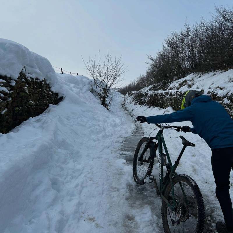 In terms of the weekend’s ‘riding’, it was pretty much an exercise in… exercise. Whilst it was nice to not have soft mud, we may possibly have underestimated the amount of snow there’d be on the fells. Still, it was rideable and enjoyable once the gradient turned downwards. And 15psi in tyres was a good idea. As was our local bakery’s New Year decision to finally enable card/phone payments. Never has a sausage roll and a cup of tea been so welcome.