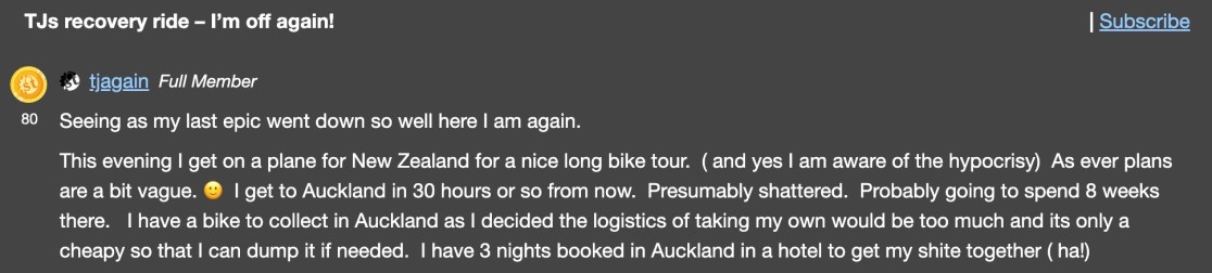 Forum legend tjagain is off on another adventure. Find out how he deals with the helmet compulsion laws of Down Under, plus riding the ‘wrong’ gender bicycle.