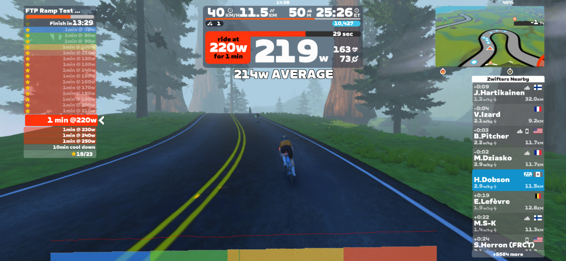 Despite my lull in activities, I have found Zwift to be kind of compelling, in much the same way as social media and computer games can be. I have found that I have tired myself out so much doing a Zwift race that it’s limited my real-world cycling abilities the next day. So instead of risking finding myself exhausted on some remote hillside, I’ve done another half hour intervals session, and then wrecked myself for the next day. Conversely, I’ve found myself being annoyed after a bike commute to work and back that I’m now too tired to do the race I wanted to do on Zwift. I’ve yet to figure out how to get the Zwift/real life balance quite right, but I have noticed my legs feeling much stronger out on the hills even after just a couple of weeks of Zwifting.