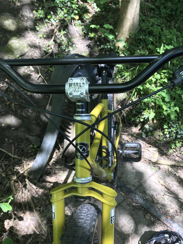 As soon as I saw the Dirtbomb I knew I’d found the frame I wanted. It’s ridiculously good fun to ride and has an extra top tube which clearly means it’s twice as good as a regular bike. Admittedly building a bike from scratch in the middle of a supply shortage seems like madness. Surprisingly I only had trouble with buying the headset and I’m still waiting on a dropper post.The bike is a mix of used, new and a couple of bits I had lying around.