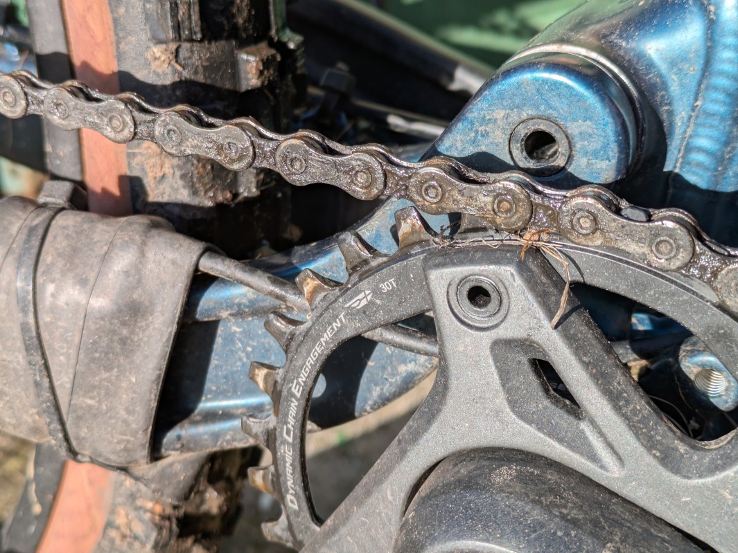 Changing the cassette can be relatively complicated in terms of adjusting the rear mech and chain length etc etc. Sometimes the better solution is to get a smaller chainring. In the case of our Bossnut, the rear cassette (11-48T) is almost easy enough, so we just swapped out the 32T chainring for a 30T to give us the range we wanted.