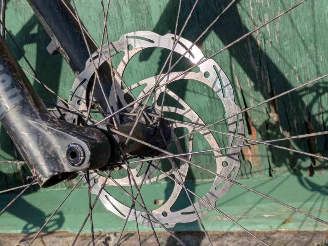 The Bossnut’s brake levers and calipers (including pads) were all pretty good. They just benefitted from fitting bigger rotors. We fitted 203mm rotors to both ends, but you probably only really need to big-up the front rotor. Don’t forget to budget for new brake bracket adaptor(s) too. We needed to fit a Post Mount 160-to-203mm adapter on the RockShox Recon fork, for example.