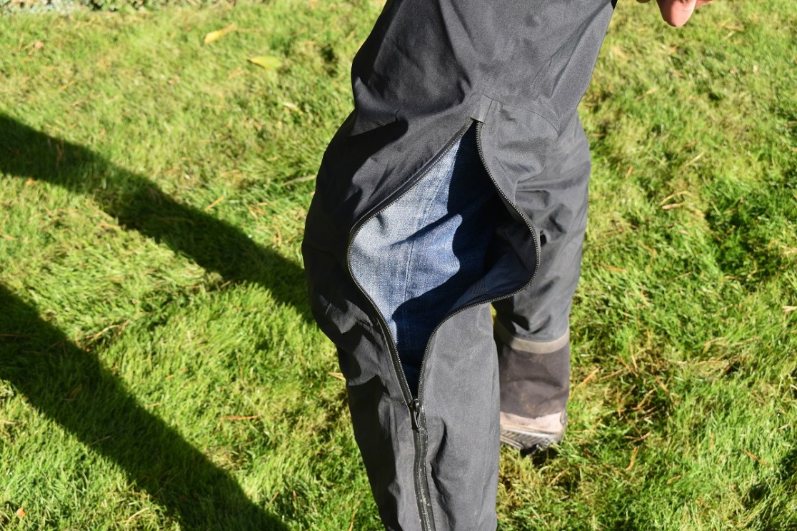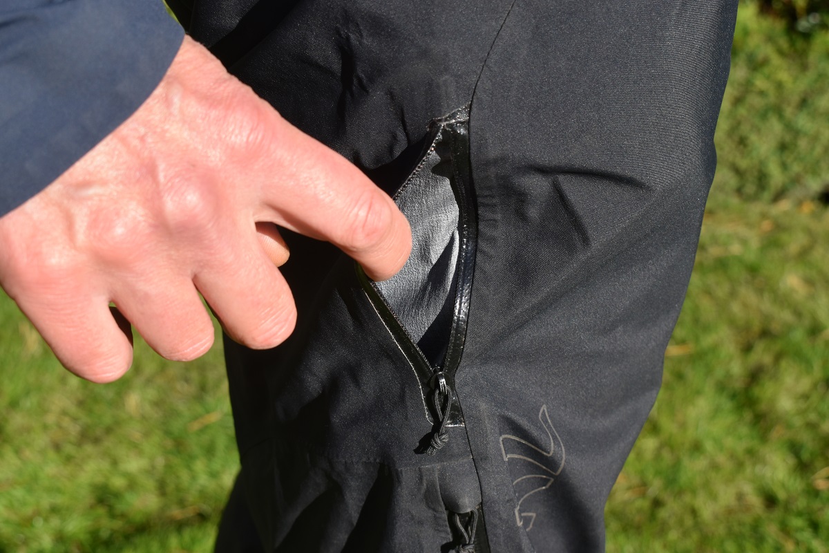 n the side, there is a single pocket that is ideal for an energy bar and a credit card but of limited application for a modern smartphone. In reality, a phone would just rub annoyingly against your thigh so it is no real loss. Down each leg is a full length waterproof zip that means you can pull them over your shoes without having to take them off. This is a common feature on walking trousers and is good to see.