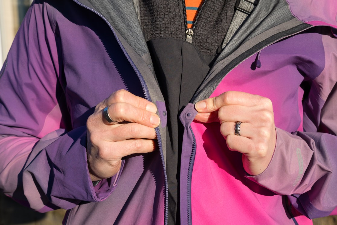 The main front zip is better with the new two-way arrangement, but it seems odd to me that the top one – which I use most – is operated by a teeny tiny tab, while the lesser-used bottom one has a bigger tab and fabric pull on it. The other way round would be easier to use, especially with gloves on. I don’t really understand the point of the poppers, although I suppose it’s a bit of a failsafe should your zip bust in some life or death type remote situation.