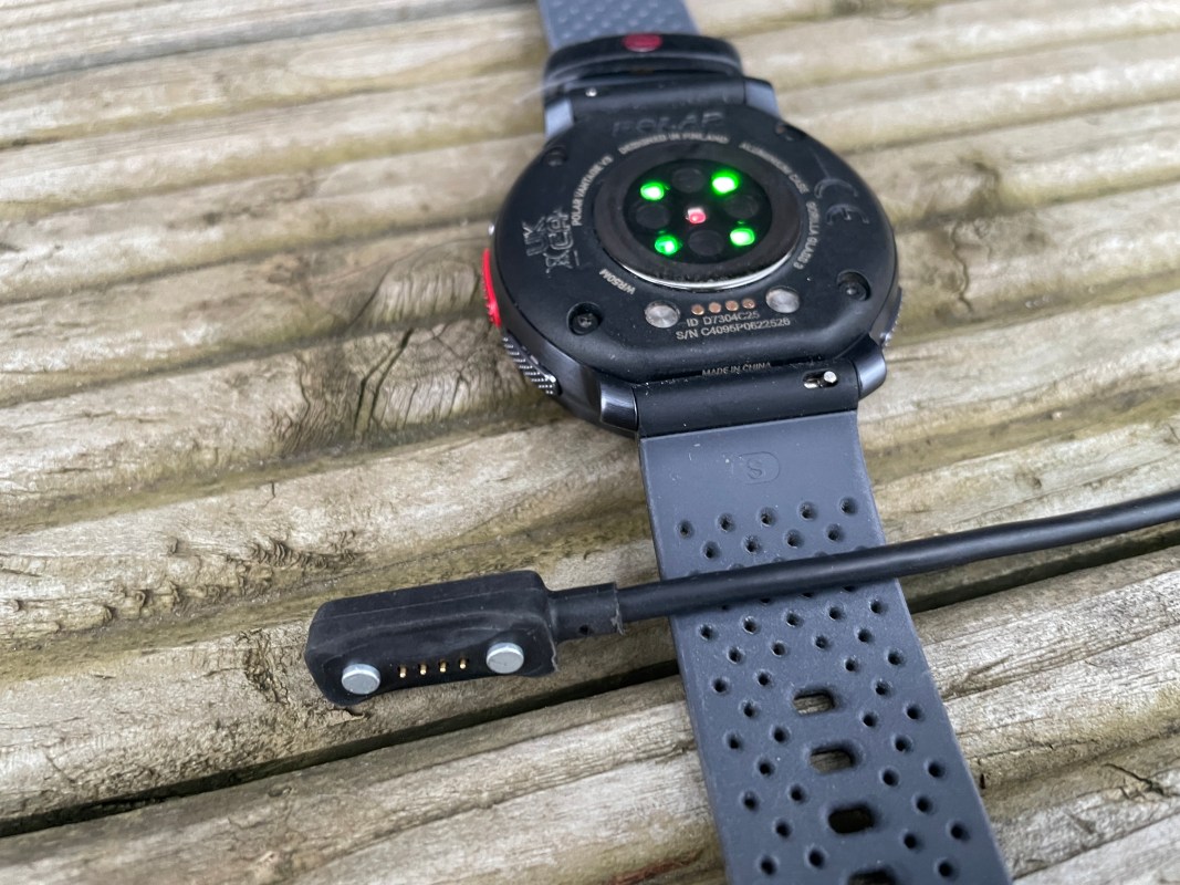 There’s a fair amount of difference between battery life on the different display options, but however you set it up I still think you get a really decent amount of time between charges. A working week is easily achievable, even when using the watch to record activities. The fact that you don’t need to charge it too often is especially good as the new charging cable seems very particular about where you plug it in. Like the Grit X, it’s a bespoke charger (and no, it’s not the same bespoke charger as for the Grit X), which I hate. I want to be able to plug some sort of standardised cable into my electronics, please. Whereas the Grit X charger had a USB A on the other end, the Vantage 3 charger has a USB C. No plug or adapter is provided. I found that all my USB C plug options would cause the Vantage 3 to charge very slowly – hours and hours and hours. Plugging it into my iPad or official Apple laptop plug proved the fastest, reaching 100% within an hour. Odd, and rather annoying. It’s also pretty easy to knock the Vantage 3 off its little charging port – make sure you set it somewhere safe to charge up so you don’t come back to use it only to find charging has stopped.