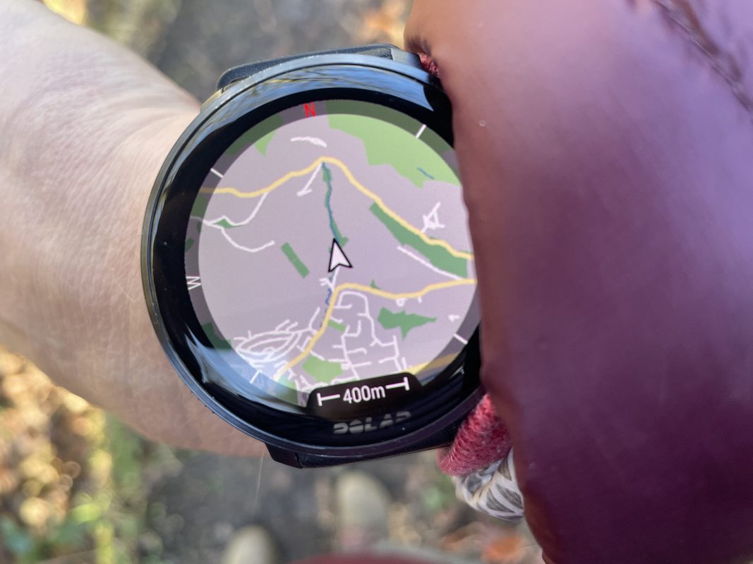 The mapping function is an addition over the Grit X. There’s a basic map pre-loaded onto the watch, and it seems pretty quick to me for it to load up and figure out where you are and display an arrow the way you are facing. It’s detailed enough to see streets, but not paths, and you can zoom in and out using the buttons (not the screen), or scroll along the landscape using the screen. It’s perhaps a handy back up if you’re saving battery on your phone, but if you want to use it for route guidance you need to import it from komoot or Strava first. A bit of extra faff, and given that in any event I don’t want to be looking at my arm as I’m trying to ride along, I haven’t used it for navigation.