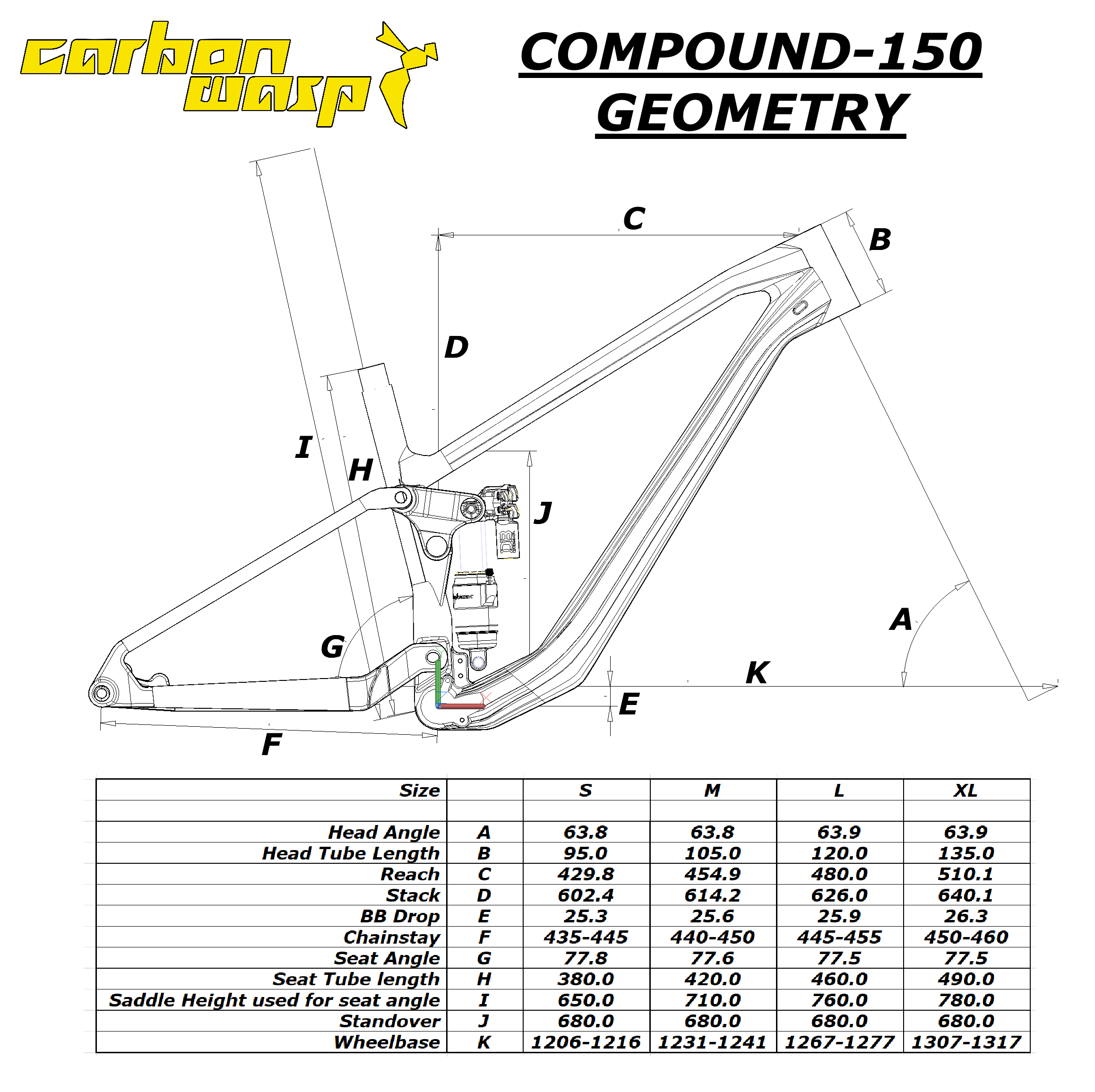 The Compound-150 is based on the 120mm travel Carbon Wasp Truffle, with a modified carbon lay up to cope with the increased abuse the longer travel might invite.
