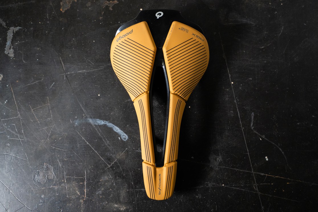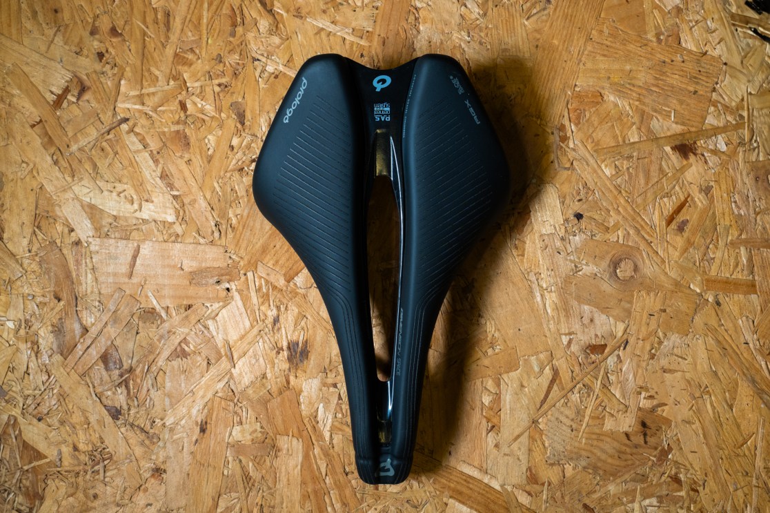 Okay, so this Pogacar’s saddle of choice apparently. That’s fine. But what’s with the rear-facing blade on the rear? I assume it’s the result of some sort of vibration quelling/dissipating theory but… Ouch. The area between my belly button and genitals is wincing just looking at it.