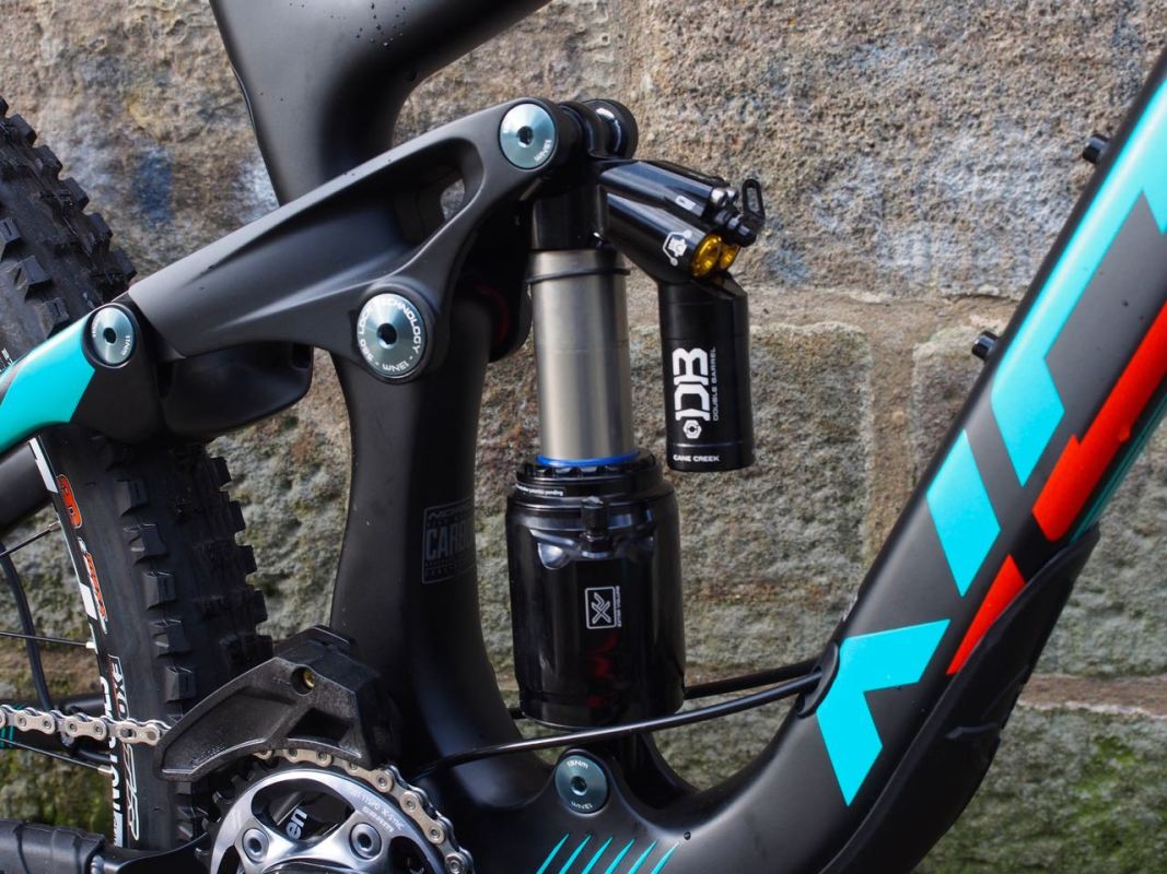 “A nice clean linkage hooks up the Cane Creek DB Inline Air shock to match the 160mm up front. There’s plenty of opportunity for tweaking suspension settings and it’s nice to see a field notebook and pencil included in the package.