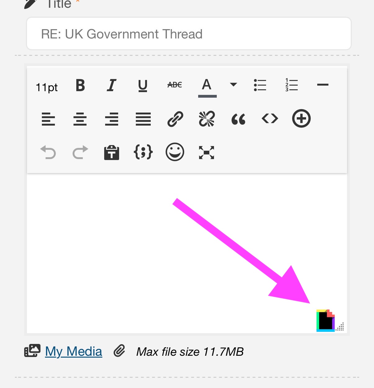 Someone of the keener eyed amongst you may have spotted an innocuous yrt slightly troubling black square in the forum reply box field thing. What is it? GIFs! Thousands of ’em…