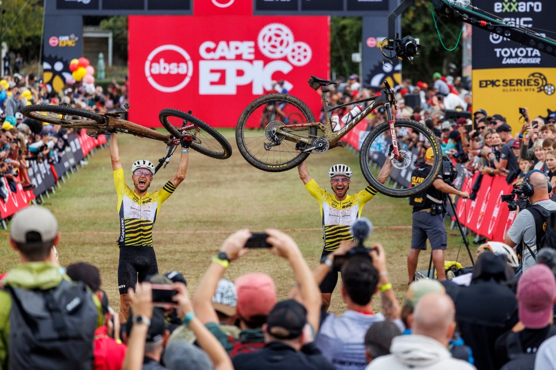After a week of racing, the winners of the Cape Epic were crowned. Thanks to heavy rain overnight, the final stage was shortened to 40km and 1.050m in climbing, which resulted in the shortest marathon stage in the history of the race. The wearers of the yellow leaders’ jersey Nino Schurter (SUI) and Filippo Colombo (SUI) of team SCOTT-SRAM MTB Racing went into the last day with a gap of just 32 seconds while Annika Langvad (DEN) and Sofia Gomez Villafane (ARG) of Toyota | Specialized had a lead of more than 23 minutes. Annika Langvad (DEN) wrote history as the only rider with six UCI Cape Epic titles to her name.