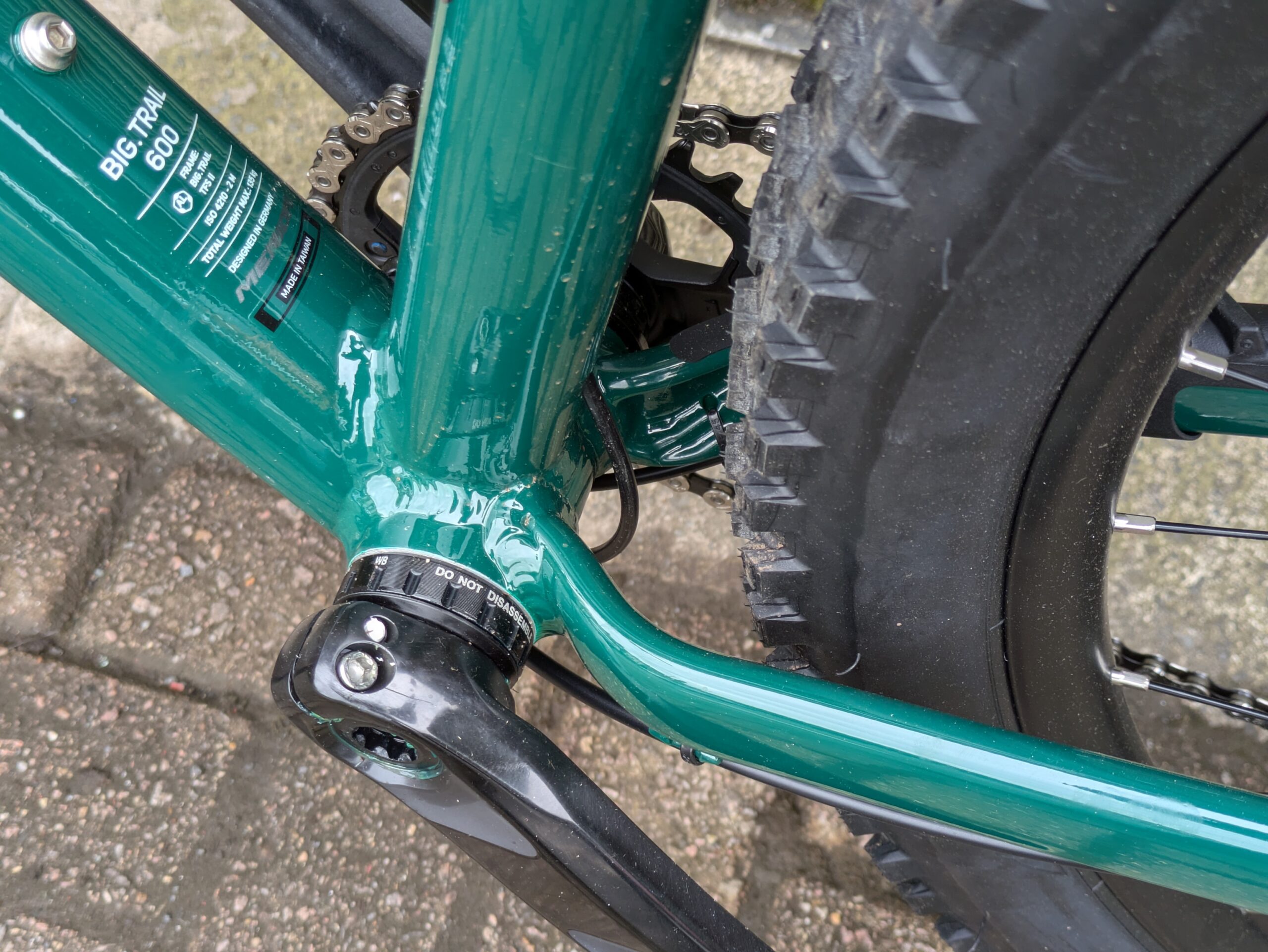 Thankfully Merida has been canny enough not to put any bosses on the seat tube. Nor any daft kinking. This means the seat tube is nice and straight and as such can accept massive dropper seat posts and keeps the effective seat angle decently steep (76.5°). The seat tube has gone up to 34.9mm diameter by the way (from 30.9mm) which will help with dropper bushing wear etc.
