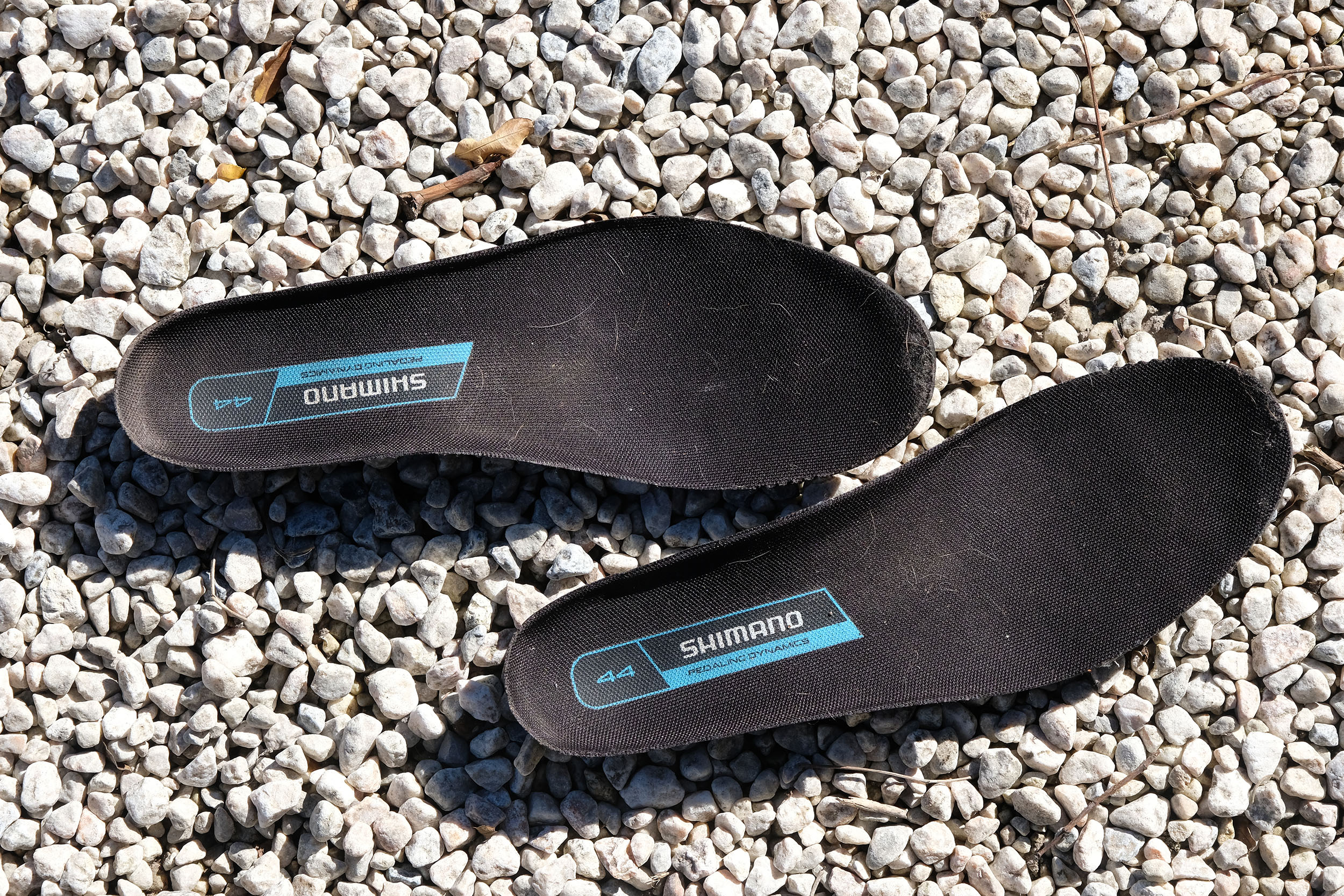 The sole differs hugely from a more racy shoe, with an EVA midsole for walking comfort and a boot-like, chunky sole made from Shimano’s Ultread rubber. They’re not light, at 930g a pair with cleats, but there’s a lot going on.